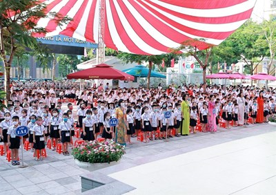 Khuôn viên trường và các lớp học được quét dọn sạch sẽ, trang trí lộng lẫy để đón các bạn học sinh quay lại trường học sau kì nghỉ hè.
