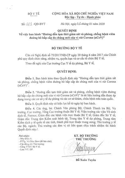 Dưới đây là khuyến cáo chung với người dân, khuyến cáo với những người từ Trung Quốc trở về của Bộ Y tế để phòng chống dịch viêm đường hô hấp cấp do chủng mới của virus corona (nCoV).