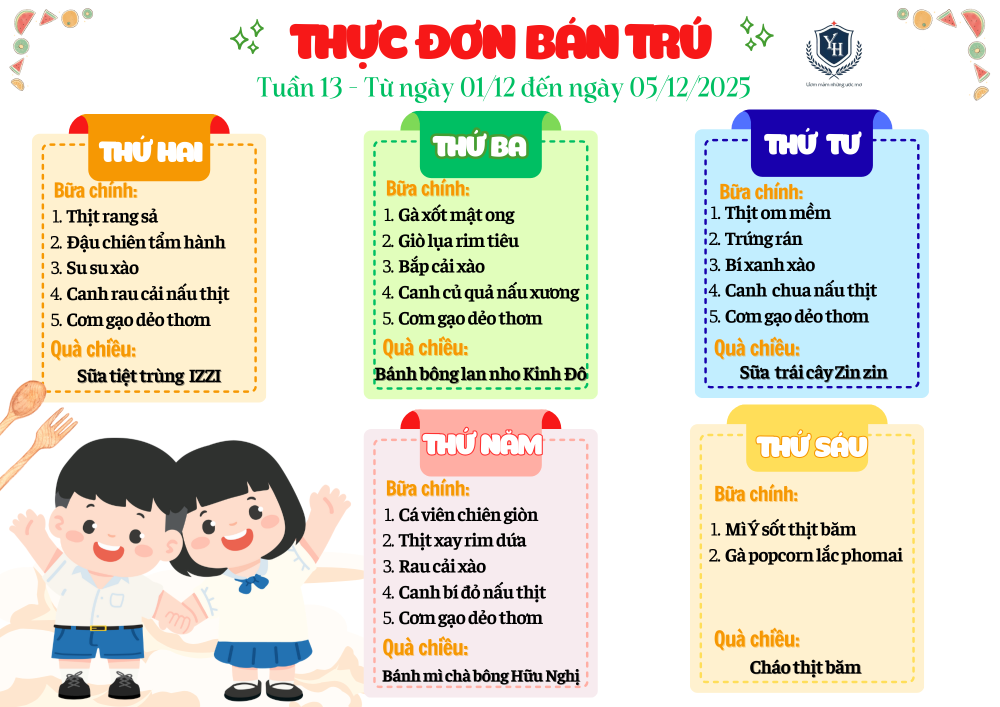 THỰC ĐƠN BÁN TRÚ - TUẦN 13