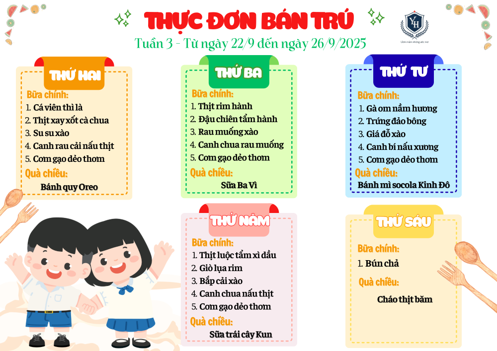 THỰC ĐƠN BÁN TRÚ - TUẦN 3
