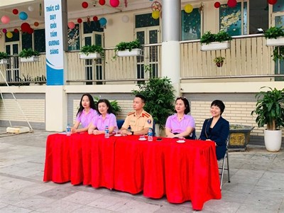 Đặc biệt, nhà trường vinh dự được đón tiếp Thiếu tá Nguyễn Ngọc Vũ – cán bộ Đội Cảnh sát Giao thông đường bộ số 6 đến chia sẻ với các em học sinh. Thông qua những câu chuyện thực tế và lời khuyên thiết thực, Thiếu tá đã giúp các em nhận thức rõ hơn về các nguyên tắc an toàn khi tham gia giao thông, từ việc sang đường đúng luật đến việc đội mũ bảo hiểm khi đi xe đạp điện.