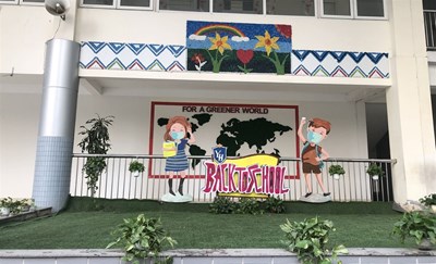 Bên cạnh công tác phòng, chống dịch, nhà trường còn tạo không khí vui tươi, trang hoàng màu sắc sặc sỡ để chào đón học sinh quay trở lại trường.