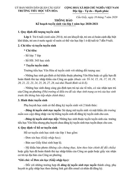 TRƯỜNG TIỂU HỌC YÊN HÒA