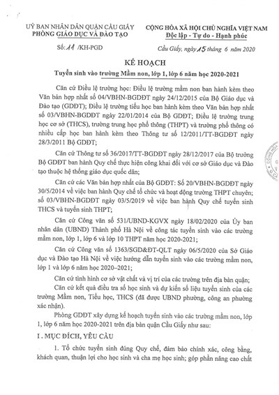 Căn cứ Quyết định số 3951/QĐ-UBND ngày 23/7/2019 của Ủy ban nhân dân Thành phố Hà Nội về việc ban hành Kế hoạch thời gian năm học 2019 – 2020 đối với giáo dục mầm non, giáo dục phổ thông và giáo dục thường xuyên trên địa bàn Thành phố Hà Nội;