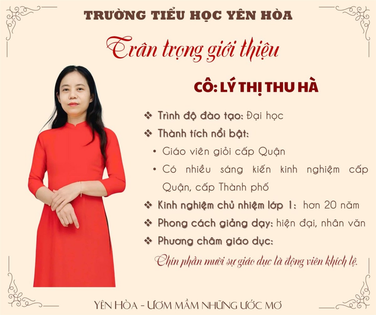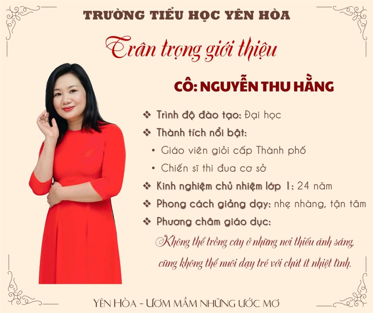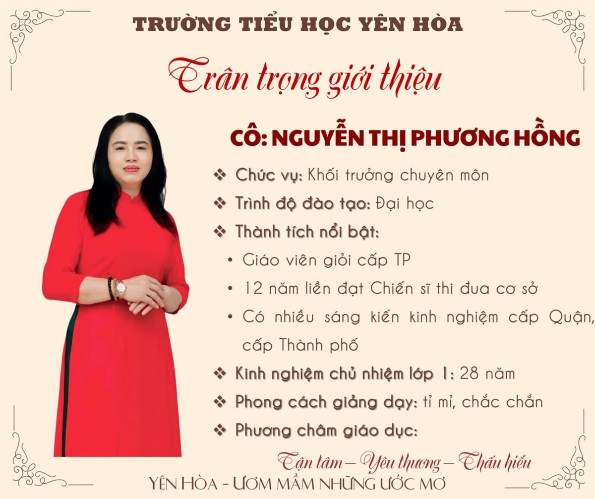 Khối 1 năm học 2024 – 2025 của trường Tiểu học Yên Hòa quy tụ những giáo viên tâm huyết, sáng tạo, đạt chuẩn trình độ đào tạo, là giáo viên giỏi các cấp và đặc biệt là đã có kinh nghiệm làm công tác chủ nhiệm lớp 1 lâu năm nên các cô luôn thấu hiểu tâm lí của học trò nhỏ và có những phương pháp vô cùng hiệu quả trong việc dạy học cũng như rèn nề nếp cho các con.