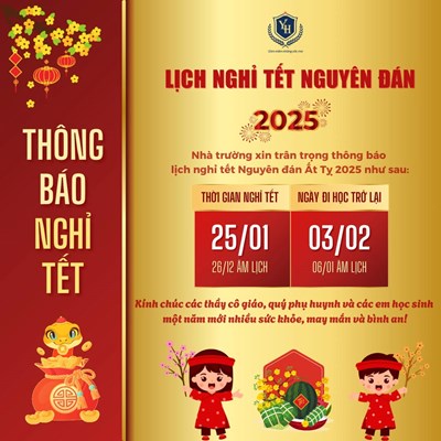 Trường Tiểu học Yên Hoà trân trọng thông báo Lịch nghỉ tết Nguyên đán năm 2025