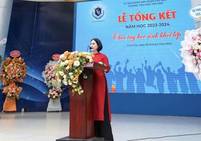 Nhà trường vinh dự được đón bà Nguyễn Thị Tạo - Chủ tịch Hội khuyến học phường Yên Hoà cùng đại diện Ban thường trực Hội Cha mẹ học sinh, Ban phụ huynh các lớp, toàn thể cán bộ, giáo viên, nhân viên và gần 2000 em học sinh của trường.