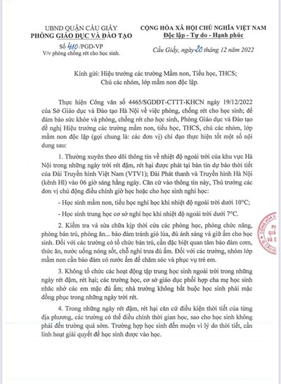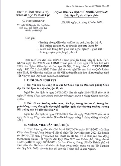 Căn cứ Quyết định số 2865/QĐ-UBND ngày 12/8/2020 của Ủy ban nhân dân Thành phố Hà Nội về việc ban hành Kế hoạch thời gian năm học 2022 – 2023 đối với giáo dục mầm non, giáo dục phổ thông và giáo dục thường xuyên trên địa bàn Thành phố Hà Nội;
