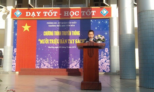 Sáng ngày 28/11/2016 trường Tiểu Học Yên Hòa đã tổ chức chương trình Truyền Thông “Mười triệu bàn tay sạch”. Sau đây là một số hình ảnh từ chương trình: