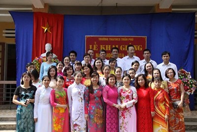 Các thầy cô giáo hai trường trong lễ khai giảng tại Yên Bái