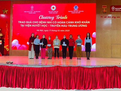 Với toàn bộ số tiền thu được từ các dự án “Lì xì yêu thương”, “Vườn hoa xuân”, “Tủ sách nhân ái” và "Gian hàng hội chợ xuân" là 70.000.000 đồng, chiều ngày 17/02/2025, phối hợp với Hội Chữ thập đỏ Quận Cầu Giấy do bà Bùi Thị Lan Phương - Chủ tịch Hội Chữ thập đỏ Quận Cầu Giấy đại diện, đại diện Ban Giám hiệu, giáo viên, nhân viên, học sinh và cha mẹ học sinh nhà trường đã có mặt tại Viện Huyết học – Truyền máu Trung ương để trao tận tay những món quà nhỏ tới gia đình các bệnh nhi có hoàn cảnh khó khăn đang điều trị tại viện. Đây là tình cảm ấm áp gửi gắm sự sẻ chia chân thành cùng những lời chúc, lời động viên tới các bạn nhỏ kém may mắn. Hi vọng các em sẽ thật mạnh mẽ, sớm chiến thắng bệnh tật để trở về với gia đình, thầy cô và bạn bè! Nhận được món quà, các gia đình bệnh nhi không nén được nỗi xúc động.