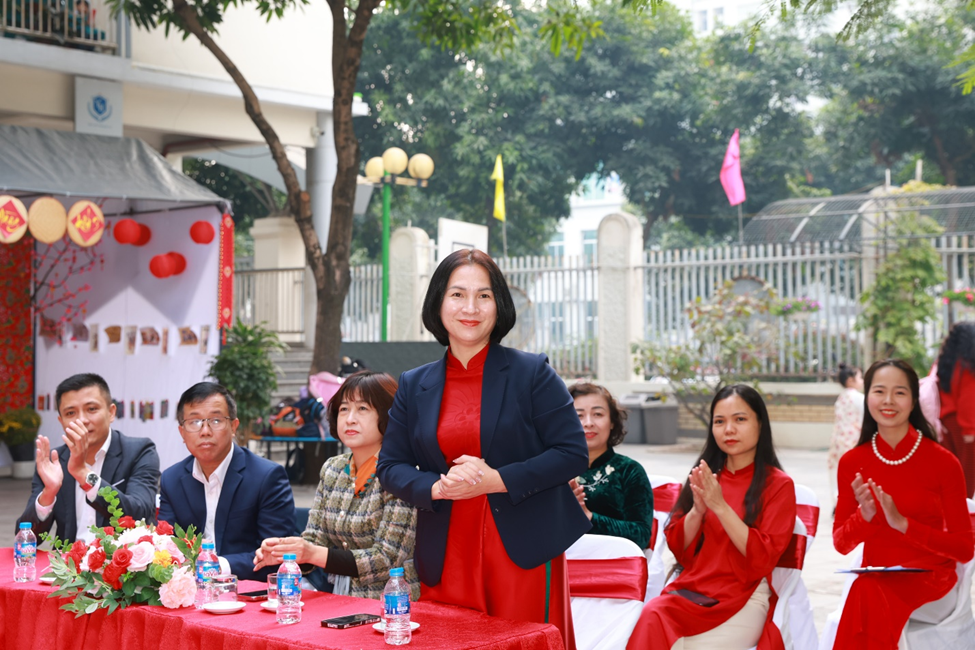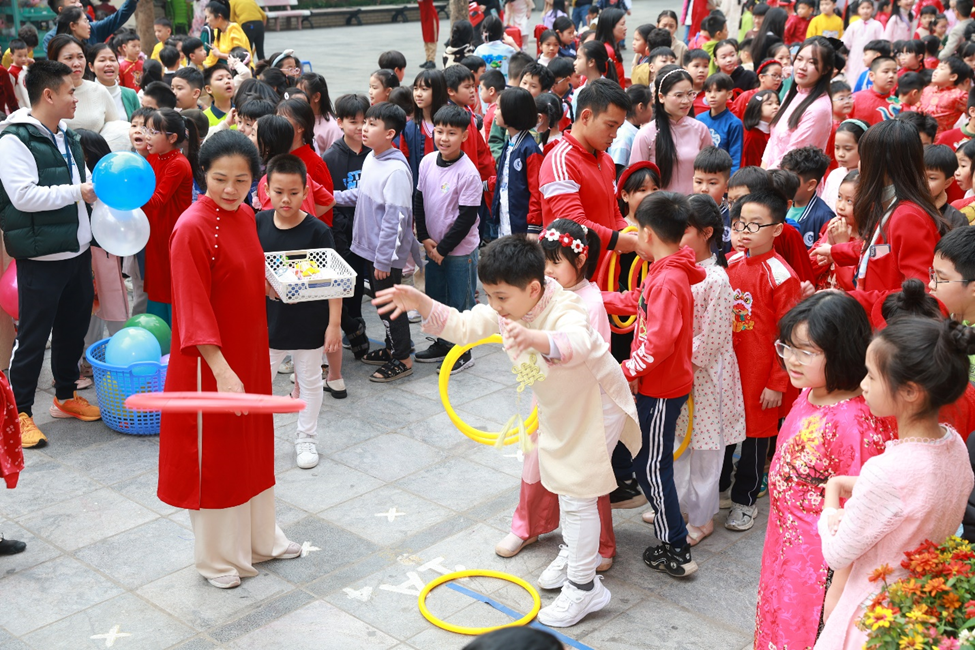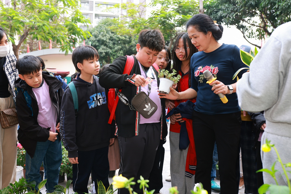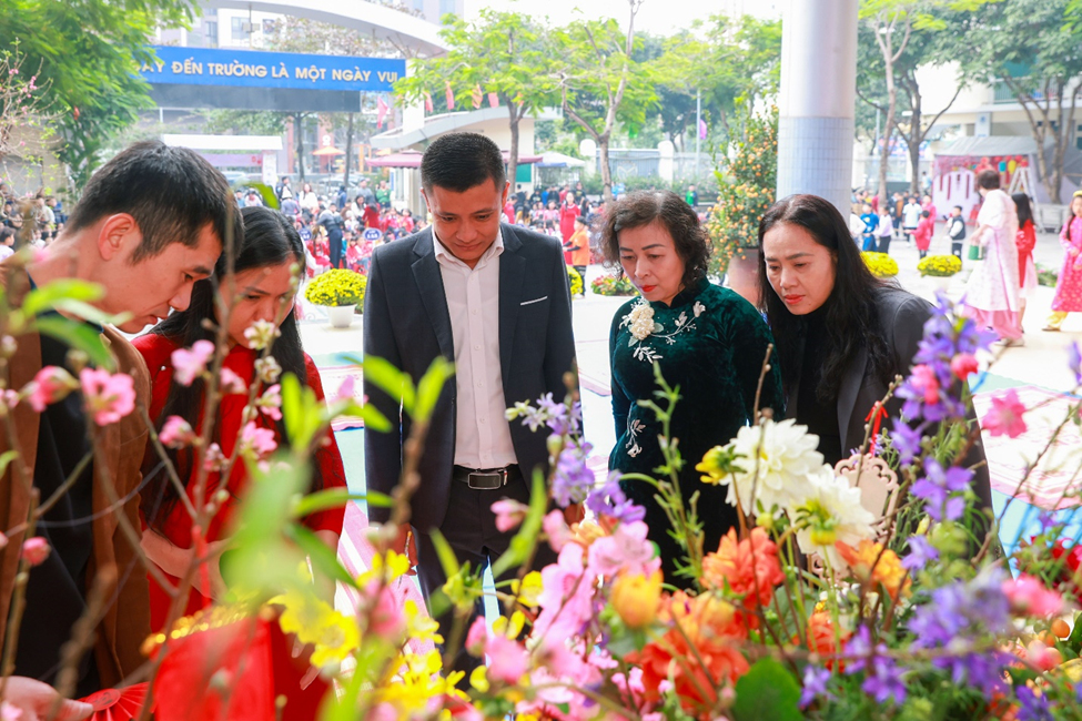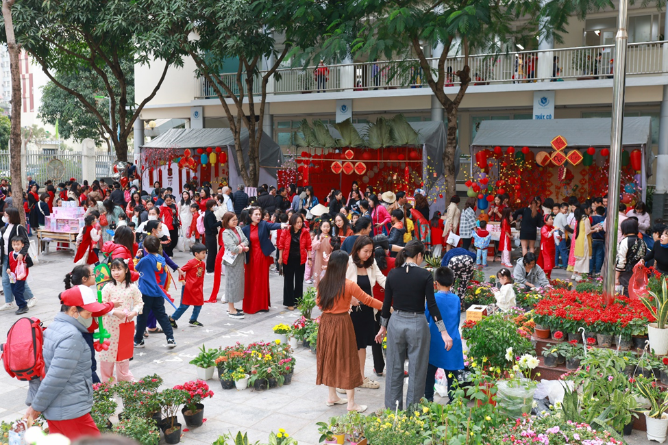 Buổi chiều, “Hội Xuân yêu thương” diễn ra trong không gian thấm đượm sắc xuân rực rỡ, tái hiện sống động phiên chợ cuối năm của người Việt với sự góp mặt của 6 gian hàng đến từ các tổ khối. Mỗi gian hàng được các em học sinh, phụ huynh, giáo viên nhà trường khéo léo chuẩn bị và thiết kế, trưng bày với nhiều ý tưởng sáng tạo, độc đáo nhưng vẫn mang đậm hương vị Tết cổ truyền dân tộc. Với các mặt hàng phong phú, đa dạng, đẹp mắt, các gian hàng đã thu hút đông đảo các em học sinh và quý vị phụ huynh ghé thăm và mua sắm. Nhà trường tin tưởng rằng đây là một hoạt động không chỉ mang ý nghĩa giải trí mà còn là một trải nghiệm thực tế có tác dụng rèn luyện các kĩ năng sống quan trọng như kĩ năng giao tiếp, tính toán, quản lí chi tiêu cho học sinh, giáo dục các em trân quý mọi sản phẩm được làm ra bởi đó chính là những giọt mồ hôi của người lao động…