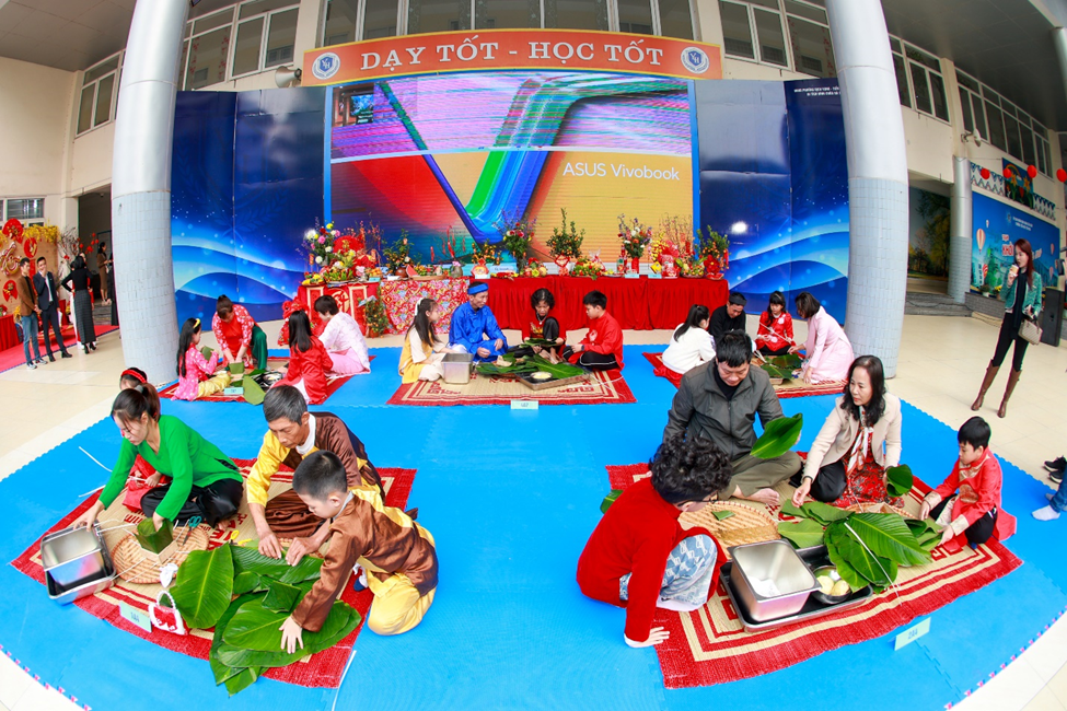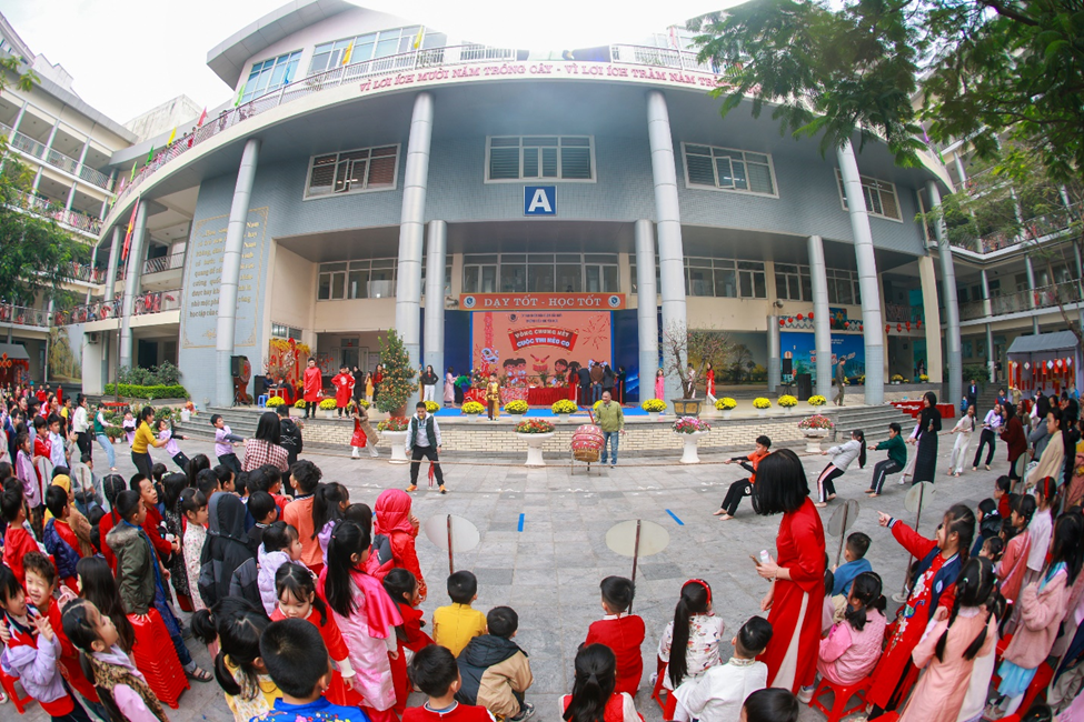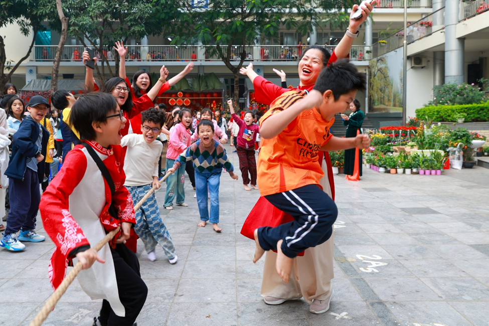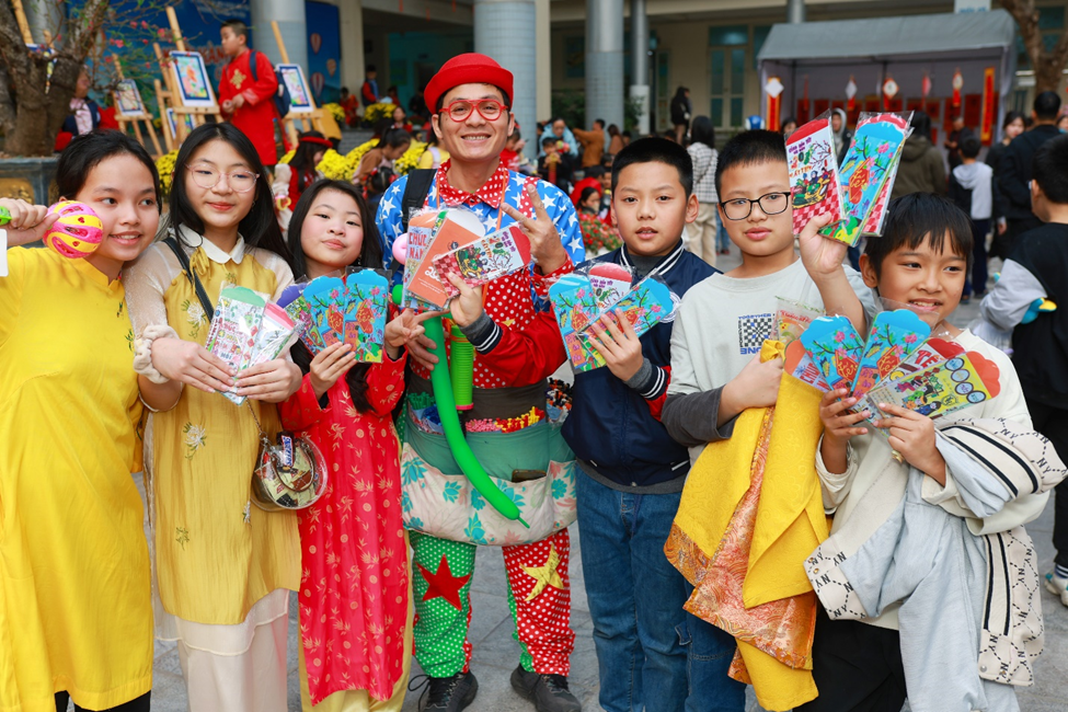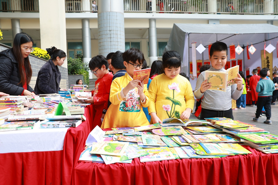 Buổi chiều, “Hội Xuân yêu thương” diễn ra trong không gian thấm đượm sắc xuân rực rỡ, tái hiện sống động phiên chợ cuối năm của người Việt với sự góp mặt của 6 gian hàng đến từ các tổ khối. Mỗi gian hàng được các em học sinh, phụ huynh, giáo viên nhà trường khéo léo chuẩn bị và thiết kế, trưng bày với nhiều ý tưởng sáng tạo, độc đáo nhưng vẫn mang đậm hương vị Tết cổ truyền dân tộc. Với các mặt hàng phong phú, đa dạng, đẹp mắt, các gian hàng đã thu hút đông đảo các em học sinh và quý vị phụ huynh ghé thăm và mua sắm. Nhà trường tin tưởng rằng đây là một hoạt động không chỉ mang ý nghĩa giải trí mà còn là một trải nghiệm thực tế có tác dụng rèn luyện các kĩ năng sống quan trọng như kĩ năng giao tiếp, tính toán, quản lí chi tiêu cho học sinh, giáo dục các em trân quý mọi sản phẩm được làm ra bởi đó chính là những giọt mồ hôi của người lao động…