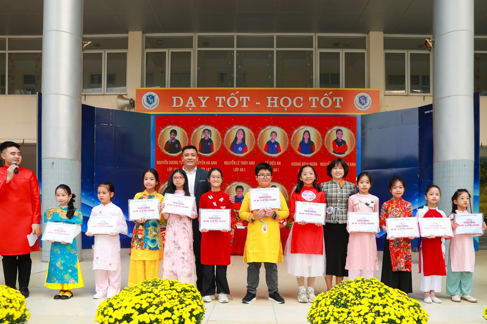 Kể từ giai đoạn cuối năm cho đến nay, để chuẩn bị cho Hội chợ Xuân, nhà trường đã phát động nhiều dự án nhằm gây quỹ ủng hộ các thiếu nhi có hoàn cảnh khó khăn trong và ngoài nhà trường. Trong đó nổi bật nhất là dự án Lì xì yêu thương – dự án đã thu hút sự quan tâm rất lớn từ phía các vị phụ huynh và các em học sinh. Trong hội chợ xuân hôm nay, 12 bạn học sinh sở hữu 12 bức vẽ xuất sắc nhất được thiết kế thành bao lì xì đã được tôn vinh trên sân khấu khai mạc trong ánh nhìn ngưỡng mộ của gần 2000 học sinh toàn trường.