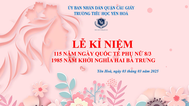 Hòa chung không khí chào mừng ngày Quốc tế Phụ nữ 8/3, kỉ niệm 1985 năm cuộc khởi nghĩa Hai Bà Trưng và phát động tuần lễ áo dài nhằm tôn vinh vẻ đẹp của người phụ nữ Việt Nam qua tà áo dài truyền thống, được sự đồng ý của Phòng GD&ĐT quận Cầu Giấy, trường Tiểu học Yên Hòa phối kết hợp cùng Ban đại diện hội CMHS các lớp tổ chức chương trình với chủ đề “Hương sắc áo dài Việt”. Đây là một hoạt động đầy ý nghĩa được nhà trường tổ chức để giáo dục học sinh về biểu tượng văn hóa, thể hiện niềm tự hào, tôn vinh giá trị truyền thống và bản sắc dân tộc.