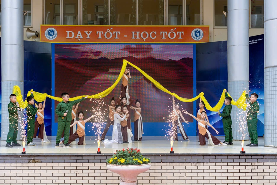 Tiếp theo chương trình, các quý vị đại biểu, các thầy cô giáo cùng học sinh toàn trường đã cùng thưởng thức tiết mục nhảy dân vũ sôi động “Yêu bền bỉ” do các bạn học sinh khối 3 biểu diễn.