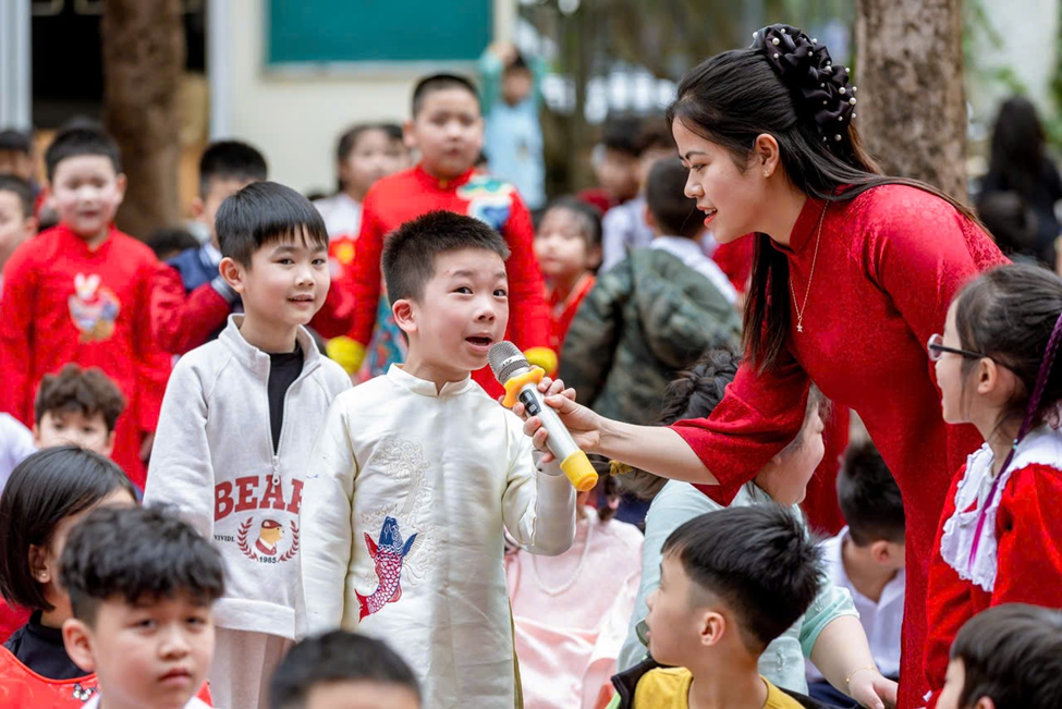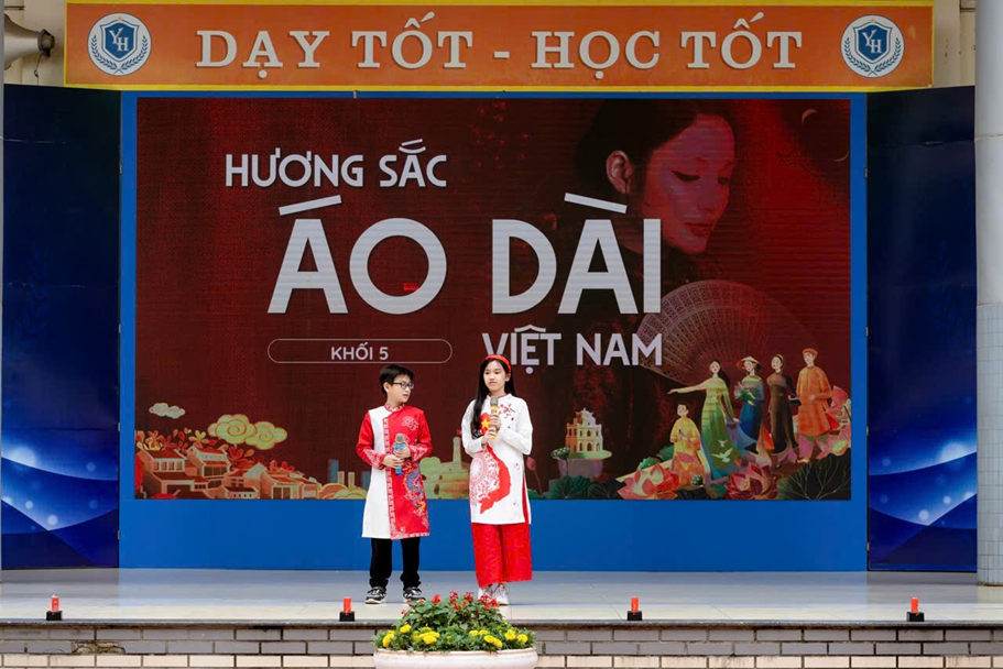Các em học sinh khối 5 đã đem đến một phần thuyết trình đầy cuốn hút và thú vị với chủ đề “Hương sắc áo dài Việt”.