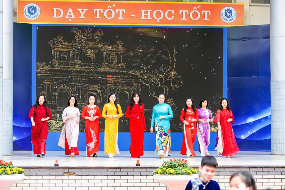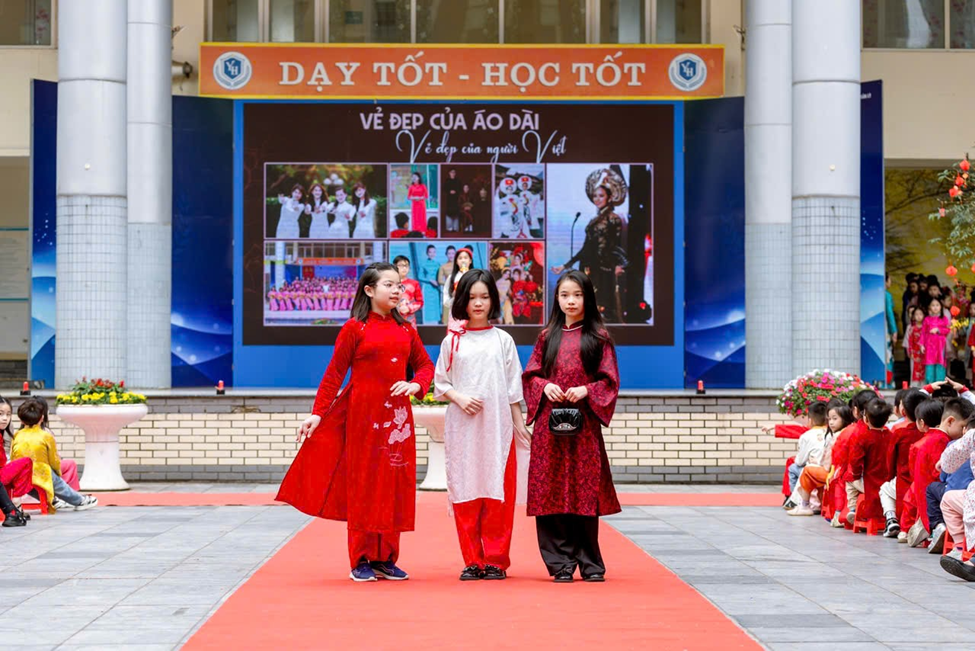 Kết thúc chương trình, các quý vị đại biểu, các thầy cô giáo cùng học sinh toàn trường đã cùng thưởng thức tiết mục trình diễn thời trang áo dài đặc sắc do các học sinh, phụ huynh và các thầy cô giáo biểu diễn. Đồng thời, nhà trường cũng phát động học sinh, giáo viên toàn trường hưởng ứng tuần lễ áo dài 2025, tiếp tục lan tỏa vẻ đẹp của tà áo dài bằng cách chụp ảnh cùng gia đình và đăng tải trên các nền tảng mạng xã hội để lưu giữ khoảnh khắc đẹp bên gia đình, góp phần bảo tồn và phát huy truyền thống, giá trị văn hóa dân tộc.