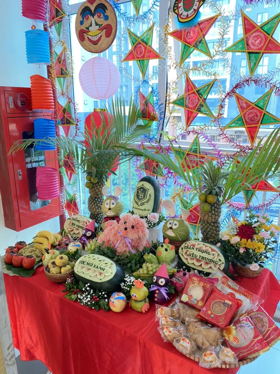 Thông qua hình ảnh mâm cỗ, các bạn học sinh khối 4 xin được gửi gắm những ước mơ của mình: Ước mơ được hòa mình vào thiên nhiên tươi xanh, được sống trong một thế giới tuổi thơ lung linh ánh trăng rằm.