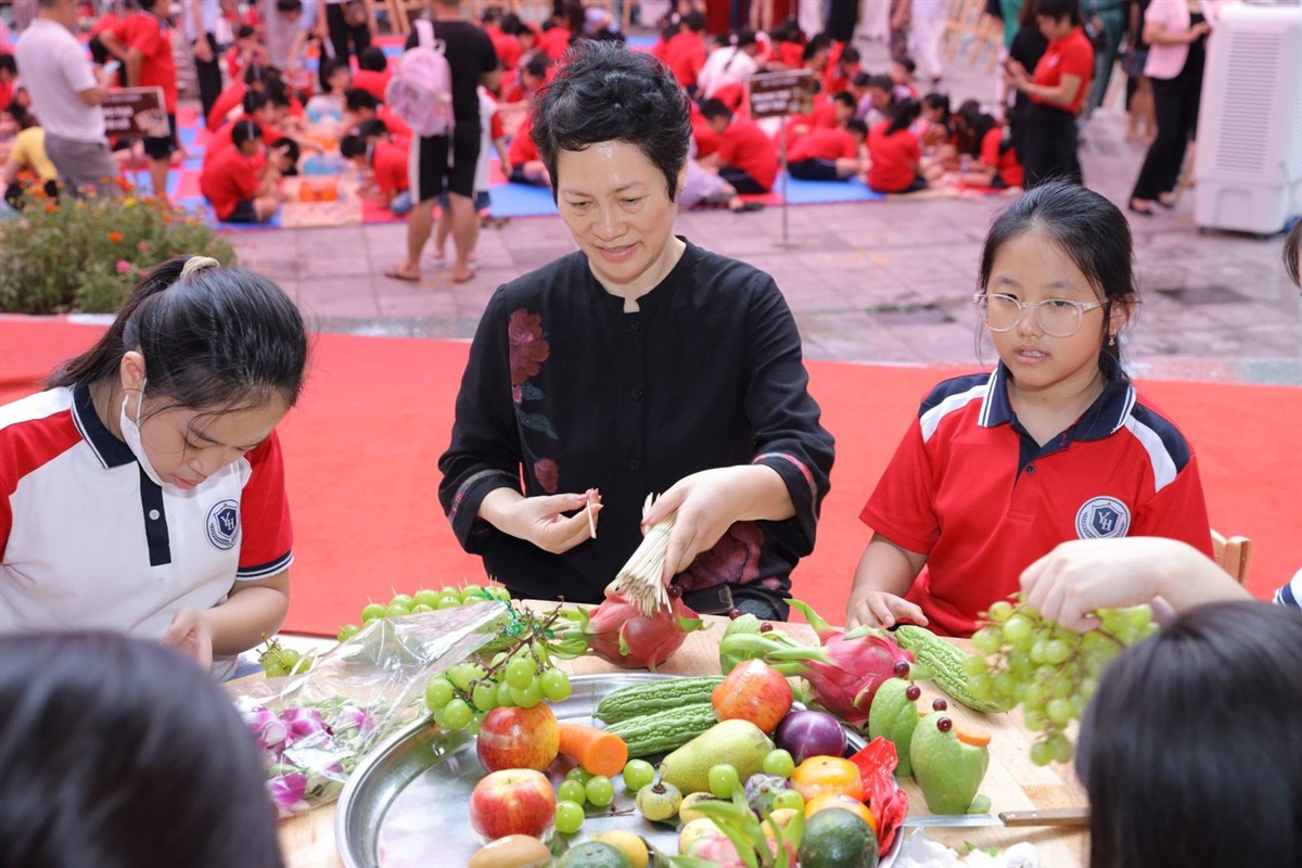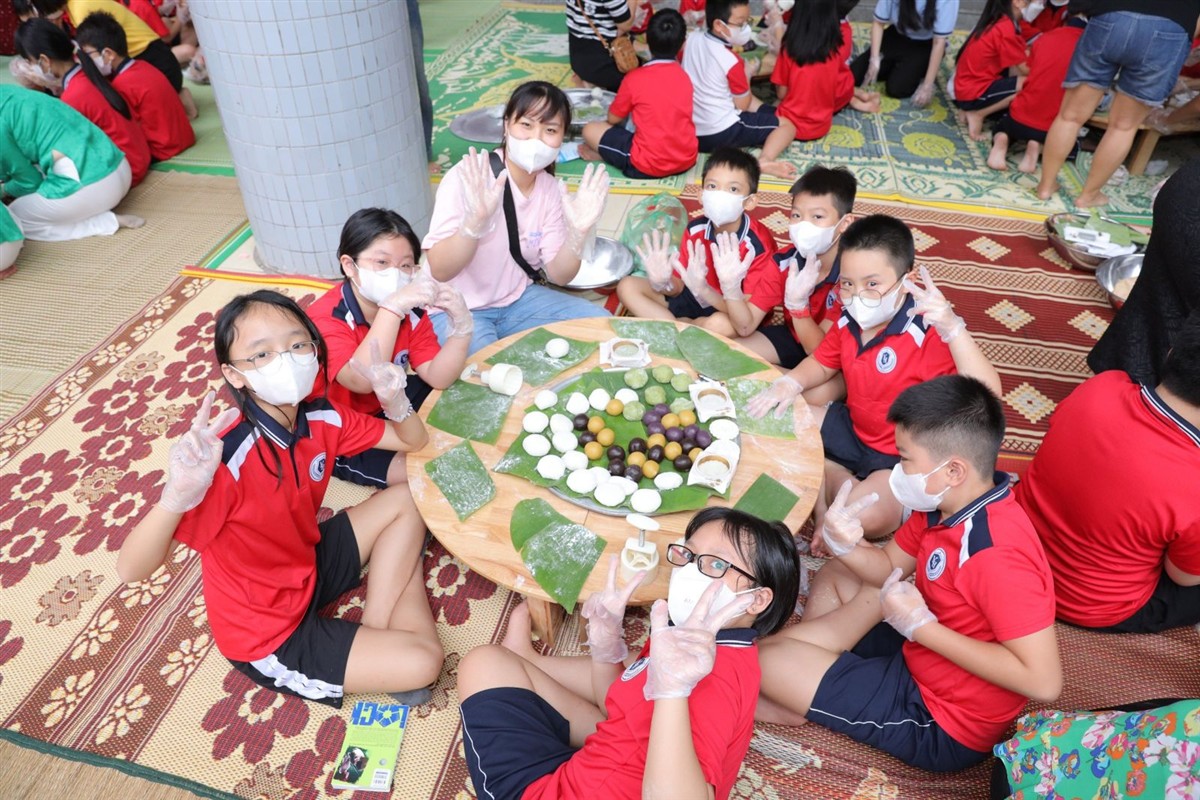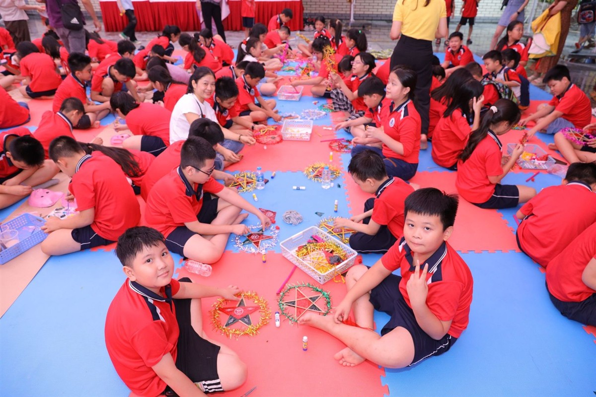 Sau bao ngày chờ đợi, Ngày hội của chúng mình cũng đã đến. Đứa nào đứa nấy háo hức gần như không thể tập trung học tập. Chưa kể đến thời tiết cứ mưa không ngớt làm chúng mình lo lắng không biết hoạt động này liệu có bị hoãn lại hay không. 3h30, tiếng trống trường vang lên giòn giã báo hiệu giờ ra chơi kết thúc. Tiếng thầy An Tổng phụ trách vừa vang lên: “Đã đến giờ diễn ra Hoạt động trải nghiệm của học sinh khối 5” là từ các hành lang, chúng mình ùa ra sân trường, nhanh chóng ngồi vào vị trí đã được sắp xếp. Dưới sự hướng dẫn của thầy cô, sự hỗ trợ của các mẹ, các nhóm đều tập trung hoàn thành sản phẩm của mình. Cơn mưa ngoài trời cũng không thể làm giảm bớt sức nóng và không khí hào hứng, khẩn trương tại các góc trải nghiệm. Sau gần nửa tiếng miệt mài, những sản phẩm đầu tiên là những chiếc bánh dẻo, những chiếc mặt nạ ngộ nghĩnh, chiếc đèn ông sao, chiếc đầu lân sặc sỡ và những con thú bằng củ quả đã lần lượt ra đời. Mặc dù tay ai cũng lấm lem nào bột, nào màu nhưng nét mặt thì không giấu được sự thích thú. Hơn 500 chiếc bánh trung thu, gần 200 chiếc mặt nạ các loại, 100 chiếc đèn ông sao cùng rất nhiều các sản phẩm ngộ nghĩnh khác chính là kết quả sau một buổi chiều hoạt động tích cực của chúng mình.