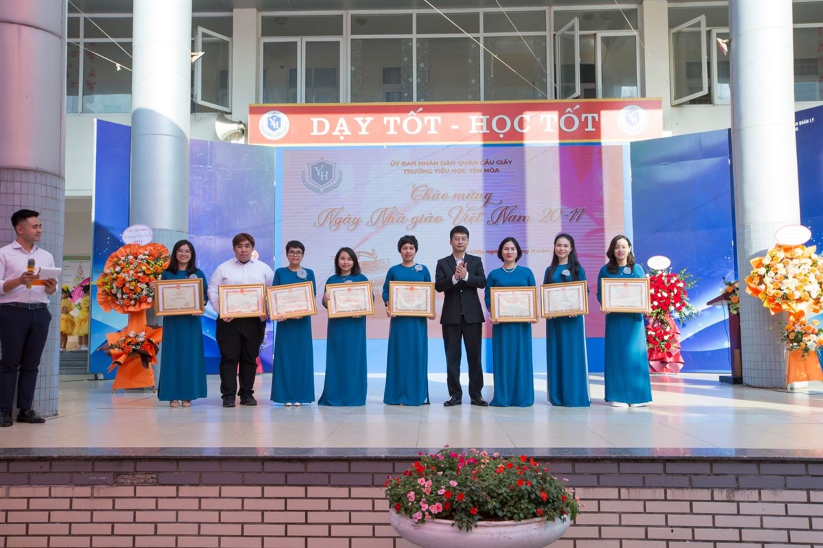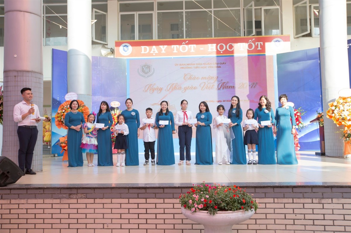 Sáng ngày 20/11/2023, trong không khí rộn ràng kỉ niệm 41 năm Ngày Nhà giáo Việt Nam, thật vui mừng và xúc động bởi lớp lớp thế hệ thầy cô và học trò đã quây quần cùng nhau dưới khoảng sân rộn ràng nắng gió, cùng ôn lại truyền thống của ngôi trường Tiểu học Yên Hòa – ngôi nhà chung của biết bao thế hệ thầy và trò. Buổi lễ đã diễn ra đầy trang trọng và lắng đọng với phần lễ tri ân song cũng tràn ngập màu sắc vui tươi của những tiết mục văn nghệ đặc sắc.