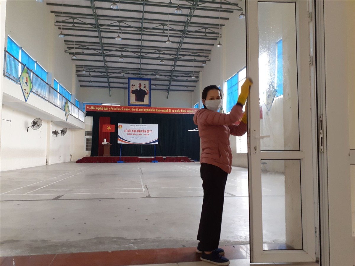 Để chủ động phòng chống dịch bệnh viêm đường hô hấp cấp do virus corona gây ra, sáng nay ngày 22/2, toàn bộ cán bộ, giáo viên, nhân viên và cùng đông đảo các bậc phụ huynh trường tiểu học Yên Hòa đã tiến hành vệ sinh môi trường khử khuẩn lần 4 bằng chloramine B.