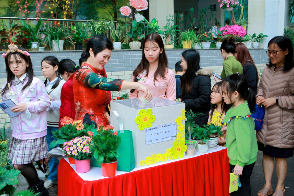Phiên chợ mở ra, các em học sinh hiểu được ý nghĩa của sự cho đi – nhận lại. Với mong muốn các em nhỏ kém may mắn nhanh khỏi bệnh, được tham gia vui chơi học tập, được sống trong tình yêu thương và sự sẻ chia của cộng đồng, gian hàng Xanh của trường đã nhận được rất nhiều các chậu cây xinh xắn phụ huynh và học sinh ủng hộ. Toàn bộ số tiền bán cây và số tiền tập thể phụ huynh cùng học sinh các lớp ủng hộ sẽ được quyên góp cho các bệnh nhi của Viện huyết học – Truyền máu Trung ương.