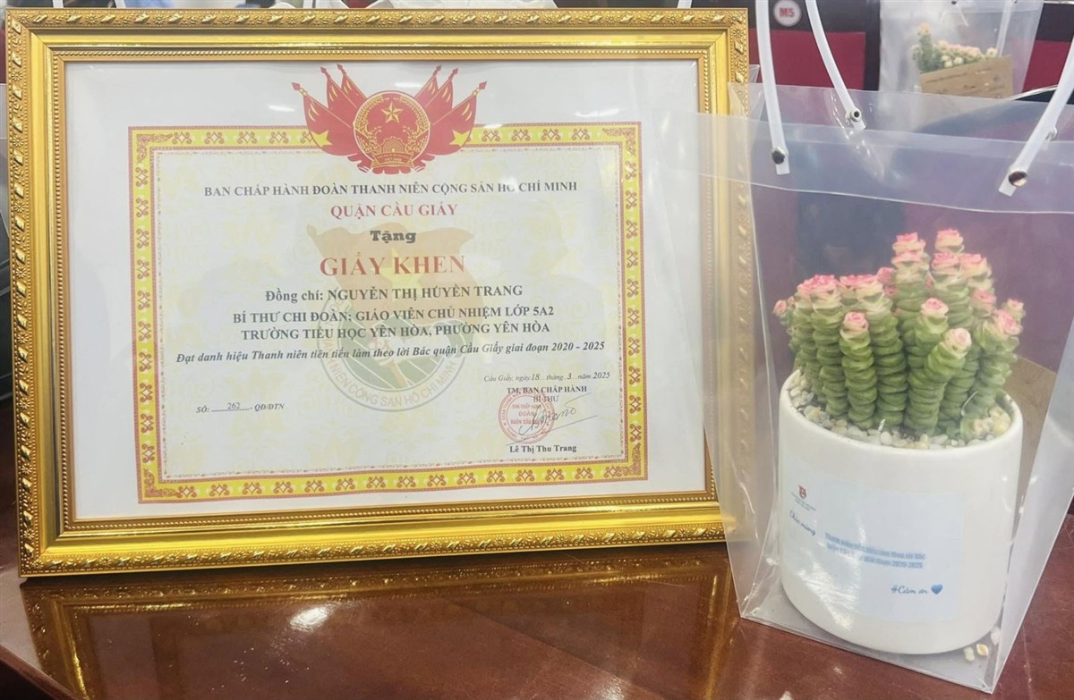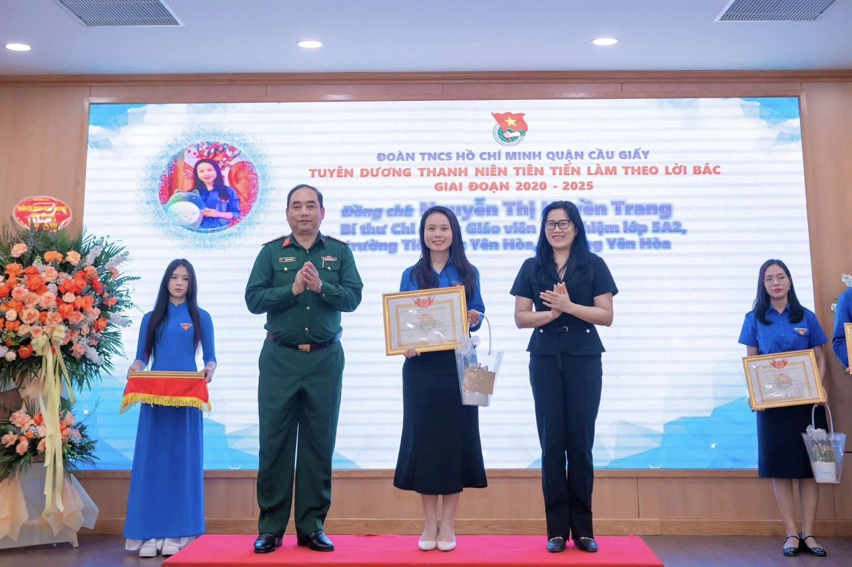 Với những đóng góp kể trên, đồng chí Huyền Trang vinh dự được Đoàn TNCS Hồ Chí Minh quận Cầu Giấy khen tặng danh hiệu “Thanh niên tiên tiến làm theo lời Bác giai đoạn 2020 – 2025”. Một lần nữa xin chúc mừng đồng chí Huyền Trang. Đồng chí xứng đáng là người thủ lĩnh gương mẫu, là tấm gương sáng cho đoàn viên trong Chi đoàn noi theo.