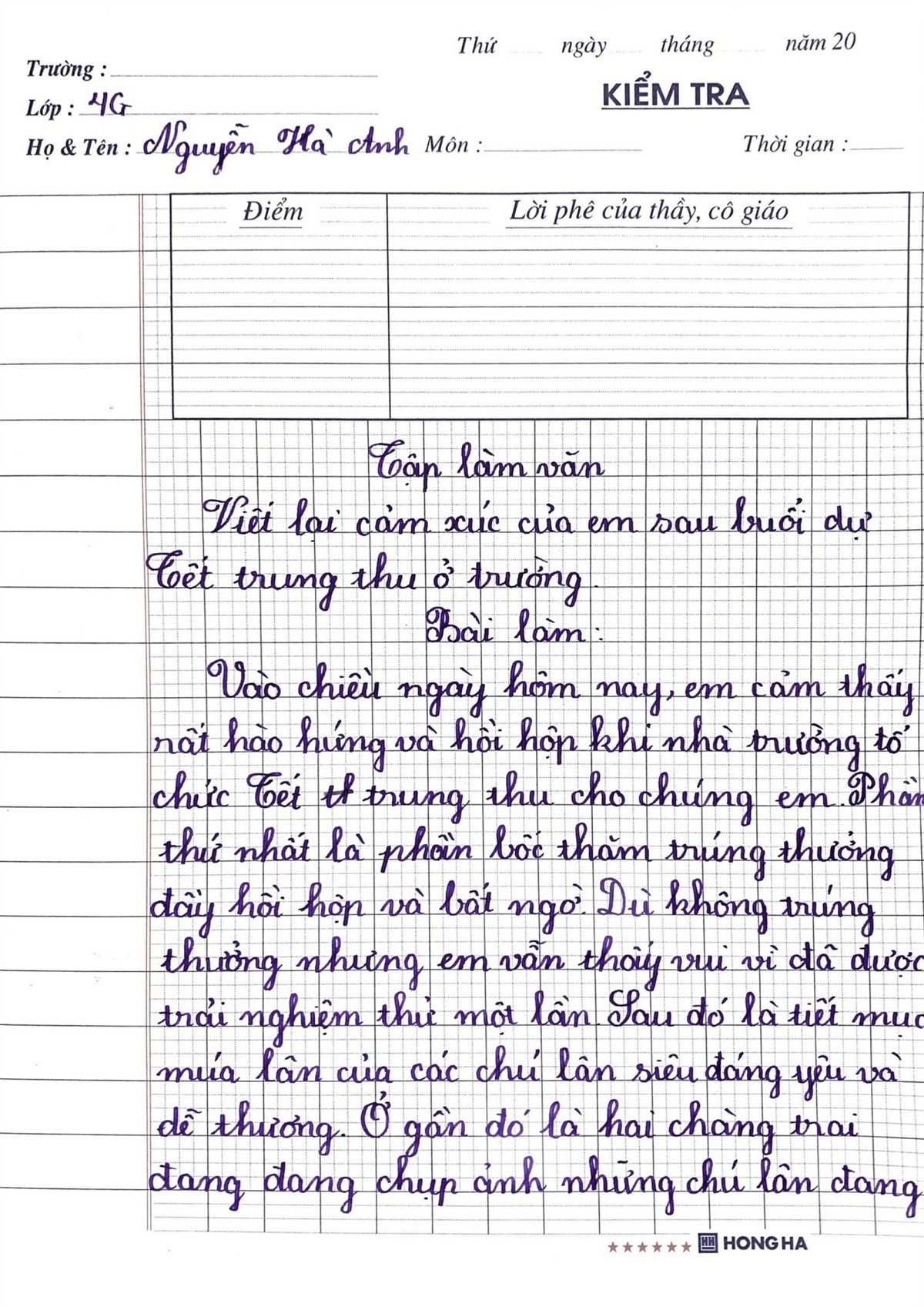 Chùm cảm xúc về Trung thu của các em học sinh khối 4