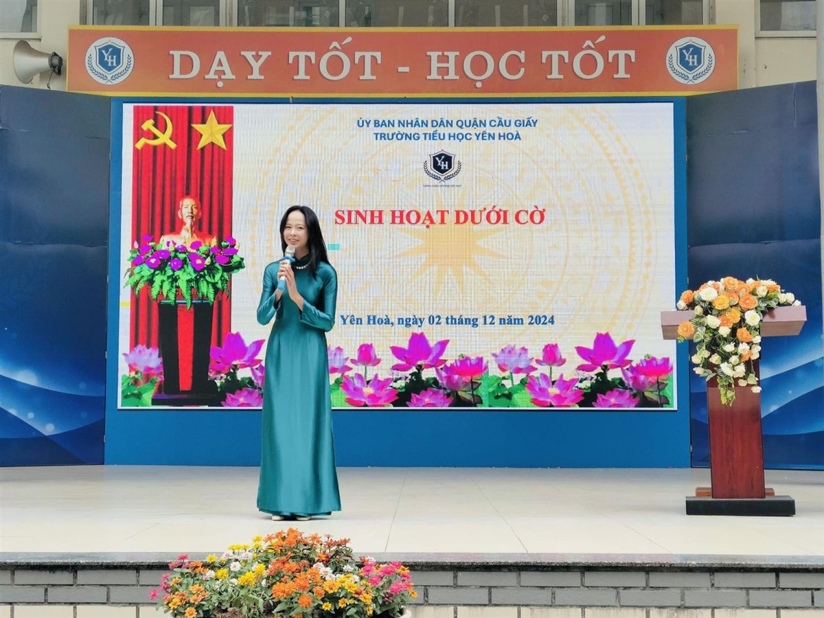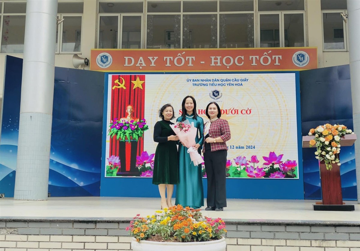 Sau lễ chào cờ trang nghiêm, cô giáo Đào Thị Thúy – Bí thư Chi bộ, Hiệu trưởng nhà trường đại diện cho tập thể cán bộ, giáo viên, nhân viên và gần 2000 em học sinh phát biểu chào đón và dành tặng bó hoa tươi thắm chúc mừng thành viên mới của đại gia đình Tiểu học Yên Hòa. Với gần 20 năm kinh nghiệm học tập, nghiên cứu và công tác trong ngành giáo dục, cùng sự nỗ lực phấn đấu không ngừng nghỉ, cô Nguyễn Thị Phương Liên đã đạt nhiều thành tích cao về chuyên môn, nghiệp vụ. Trải qua cuộc thi tuyển chức danh Phó Hiệu trưởng trường Tiểu học Yên Hoà, cô giáo Nguyễn Thị Phương Liên đã thi đỗ vào chức danh dự tuyển. Từ nay, cô Nguyễn Thị Phương Liên đã chính thức trở thành Phó Hiệu trưởng trường Tiểu học Yên Hòa.