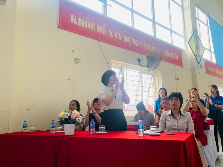 Cô giáo Vũ Thị Ánh Tuyết – đại diện đại biểu tham dự Đại hội phát biểu động viên