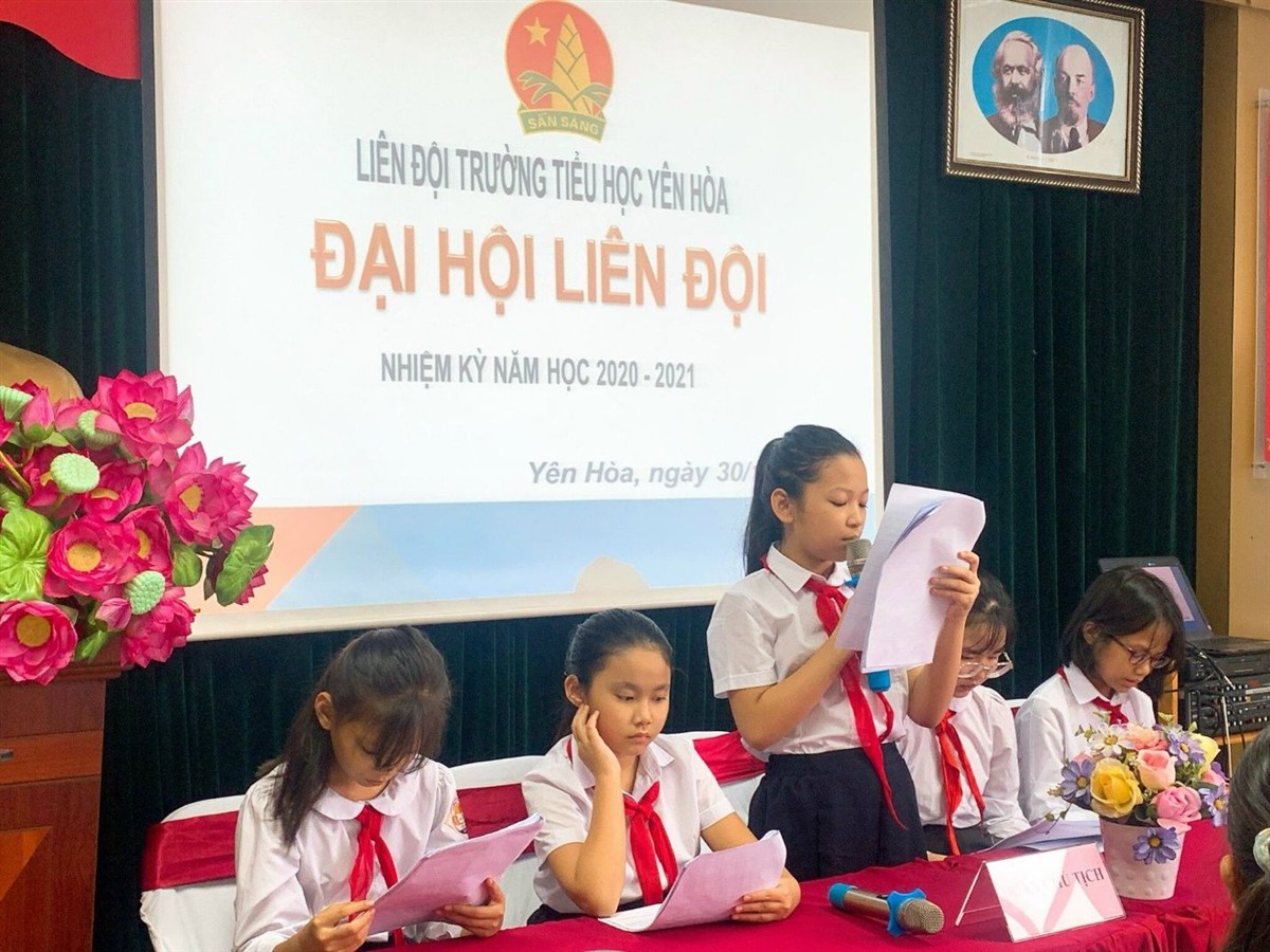Trong không khí se se lạnh của những ngày cuối thu, thực hiện kế hoạch chương trình công tác Đội và phong trào thiếu nhi năm học 2020 – 2021, được sự chỉ đạo của Quận đoàn và Ban giám hiệu nhà trường, ngày 30/10/2020, Liên đội trường Tiểu học Yên Hoà long trọng tổ chức Đại hội Liên đội nhiệm kì 2020 – 2021