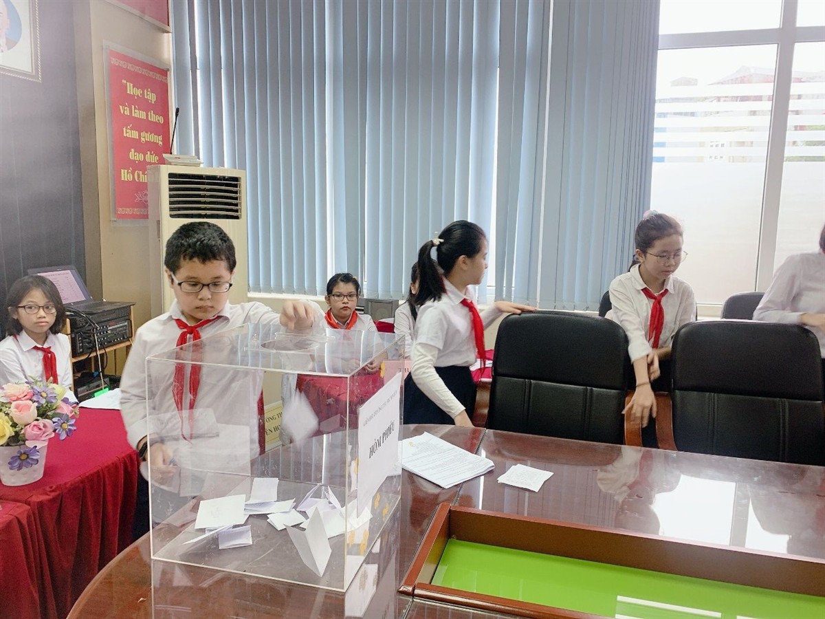 Đại hội tiến hành bầu cử BCH Liên đội nhiệm kì mới bằng hình thức bỏ phiếu kín.