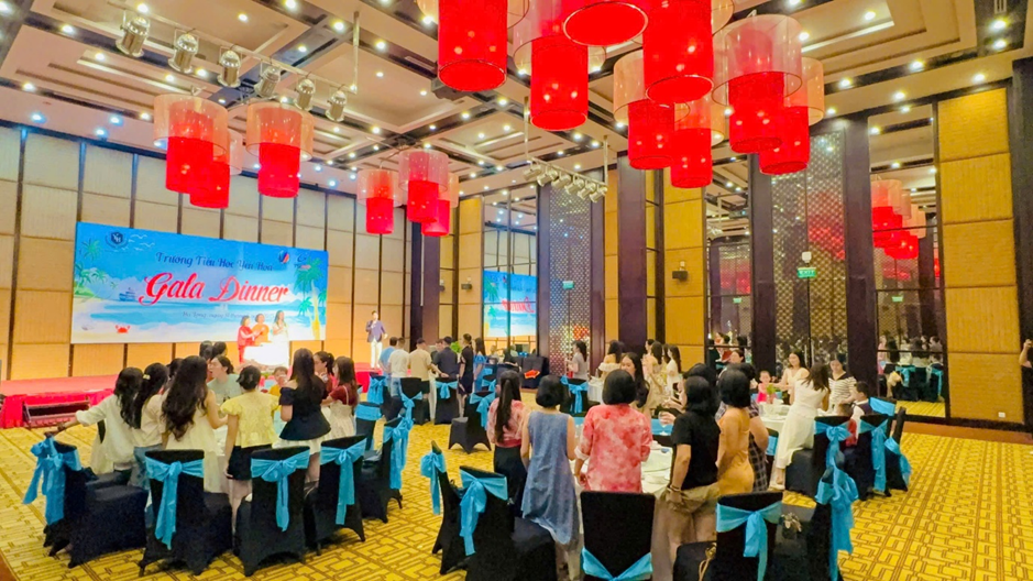 Điểm nhấn đáng nhớ nhất của chuyến đi chính là đêm gala được tổ chức ấm cúng trong không gian hội trường sang trọng. Dưới ánh đèn lung linh và không khí rộn ràng, các thầy cô cùng nhau ca hát, tham gia các trò chơi tập thể vui nhộn, giao lưu và sẻ chia những khoảnh khắc gắn bó đầy ý nghĩa, tổ chức tặng quà cho các bạn nhỏ là con em của các cán bộ - giáo viên – nhân viên nhà trường đã tham gia chuyến đi.