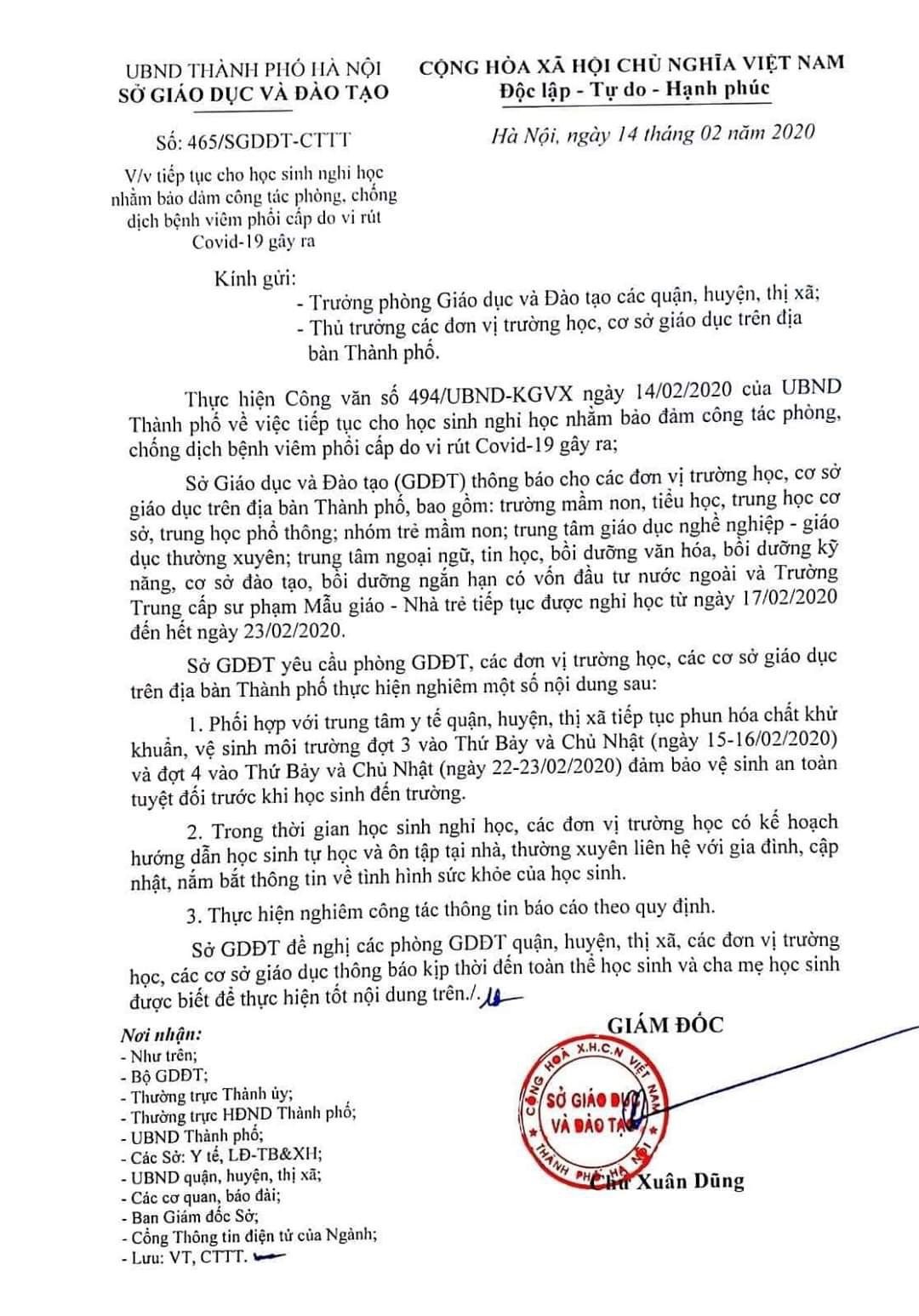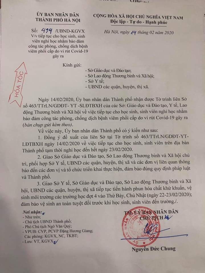 HÀ NỘI TIẾP TỤC CHO HỌC SINH NGHỈ THÊM 1 TUẦN