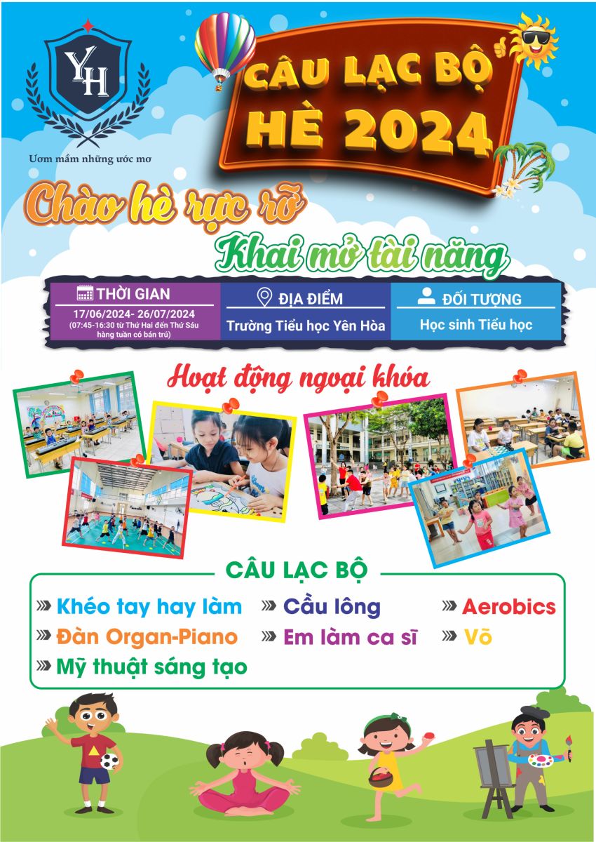 Câu lạc bộ hè 2024 là chương trình ngoại khoá và là sân chơi bổ ích dành cho các con học sinh tiểu học từ 6 đến 11 tuổi.