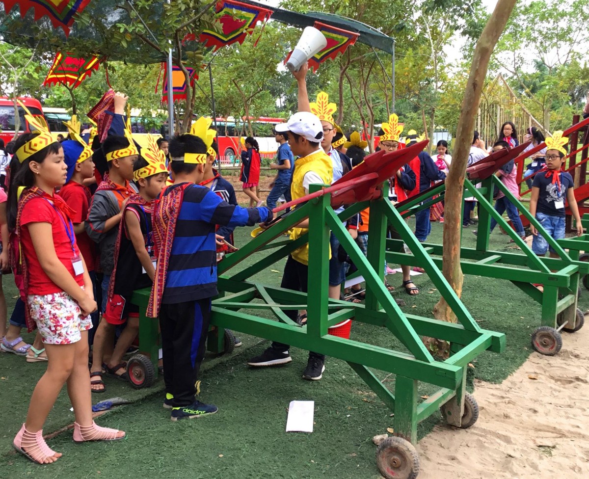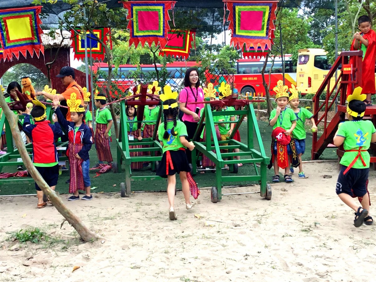 Tại đây các em được trải nghiệm làm tranh dân gian đông hồ, nặn tò he, bắt cá, pha chế dung dịch thổi bong bóng. Cùng các trò chơi vận động như là cáp treo, đi cầu khỉ, leo núi nhân tạo, cầu trượt, đi thuyền,...