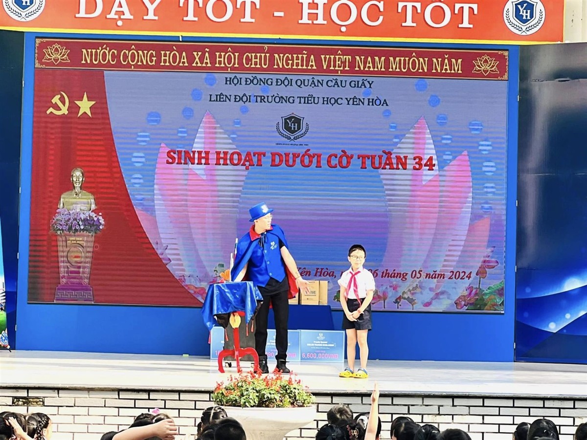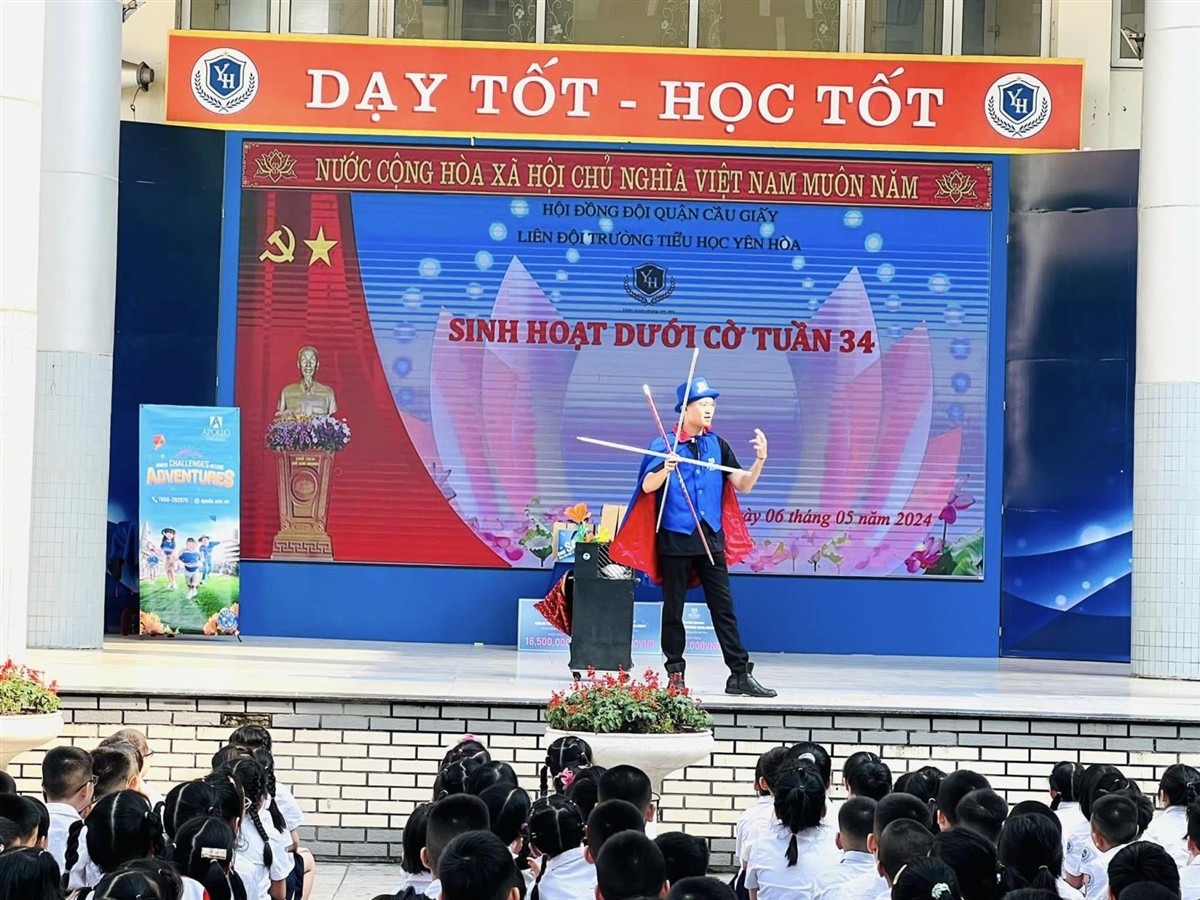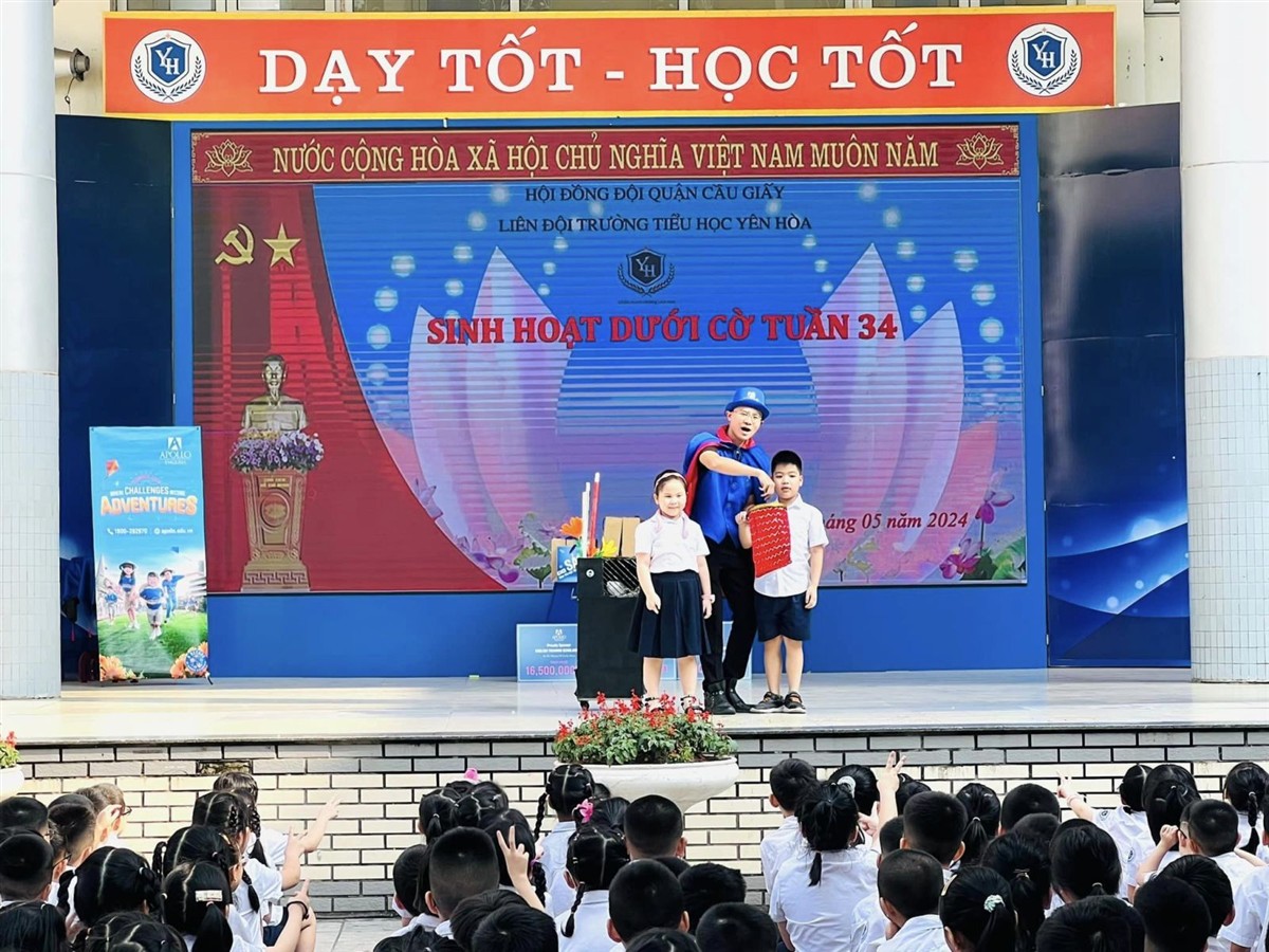Sáng ngày hôm nay (thứ Hai, ngày 13/5/2024), các em học sinh trường Tiểu học Yên Hoà đã được tham gia một buổi sinh hoạt dưới cờ vui tươi và tràn đầy năng lượng do Trung tâm Anh ngữ Apollo kết hợp với nhà trường tổ chức.