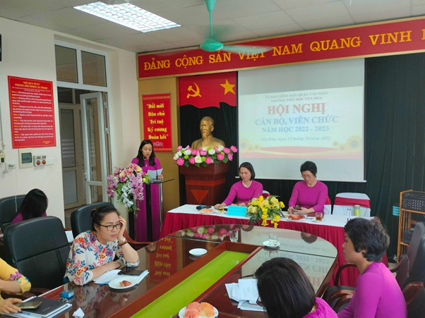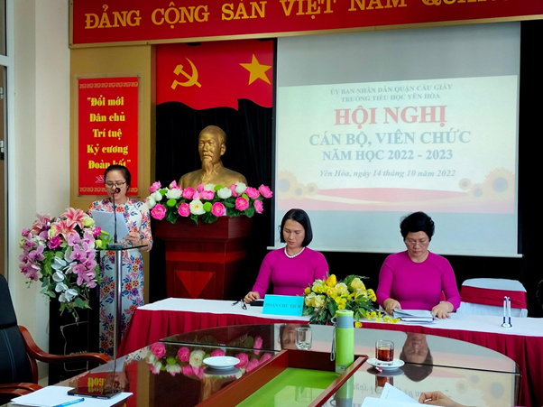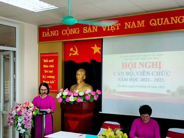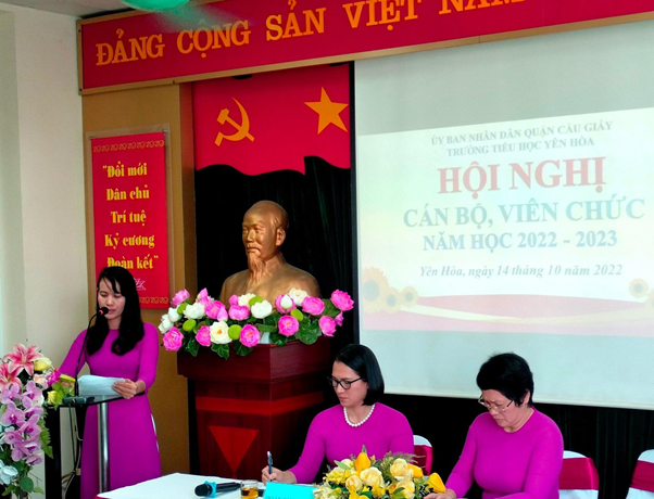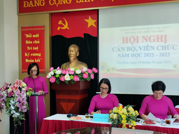 Hòa trong không khí rộn ràng trước thềm năm học mới, chiều ngày 14 tháng 10 năm 2012, trường Tiểu học Yên Hòa đã long trọng tổ chức Hội nghị cán bộ, công chức, viên chức năm học 2022 – 2023. Hội nghị diễn ra thường lệ các năm với mục đích chính đánh giá toàn bộ quá trình hoạt động của nhà trường trong năm học vừa qua, đồng thời bàn về các giải pháp thực hiện các chỉ tiêu, kế hoạch cho năm học 2022-2023 sắp tới.