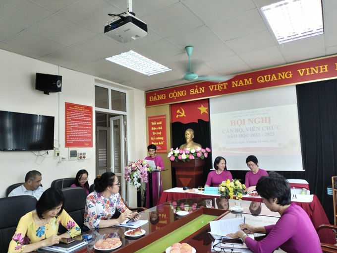 Tham dự Hội nghị có đầy đủ các đồng chí là cán bộ, giáo viên và nhân viên của nhà trường. Hội nghị đã được nghe báo cáo kết quả thực hiện Nghị quyết Hội nghị cán bộ công chức, viên chức của nhà trường năm học 2021 – 2022 cùng các phương hướng, chỉ tiêu, giải pháp thực hiện nhiệm vụ năm học 2022 – 2023.