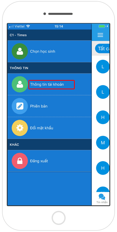 • Bạn bấm vào dòng Thông tin tài khoản.