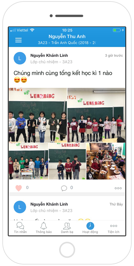 Phụ huynh chia sẻ các thông tin về học sinh qua các hình ảnh liên quan đến hoạt động của con khi ở trường hay ở nhà.