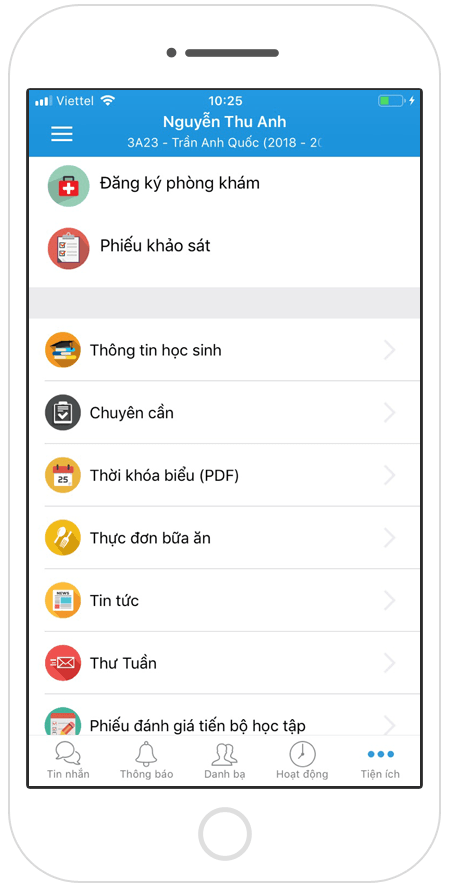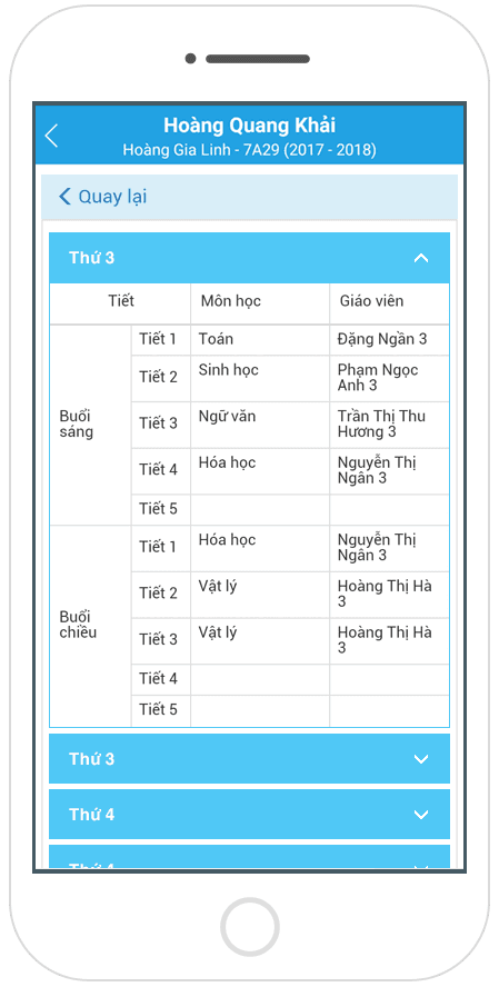 - Thời khóa biểu: Thông tin chi tiết lịch học của con ở trường.