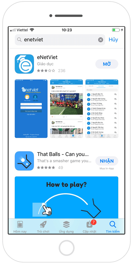 Tải và cài đặt miễn phí Enetviet từ App Store hoặc Google play.