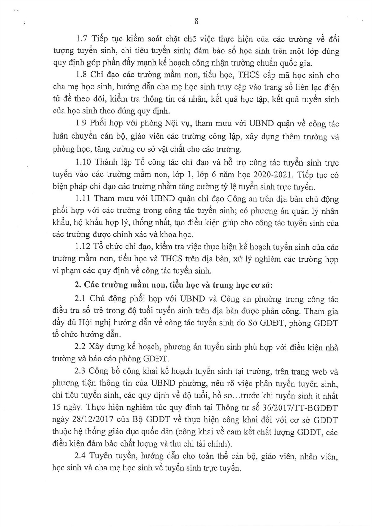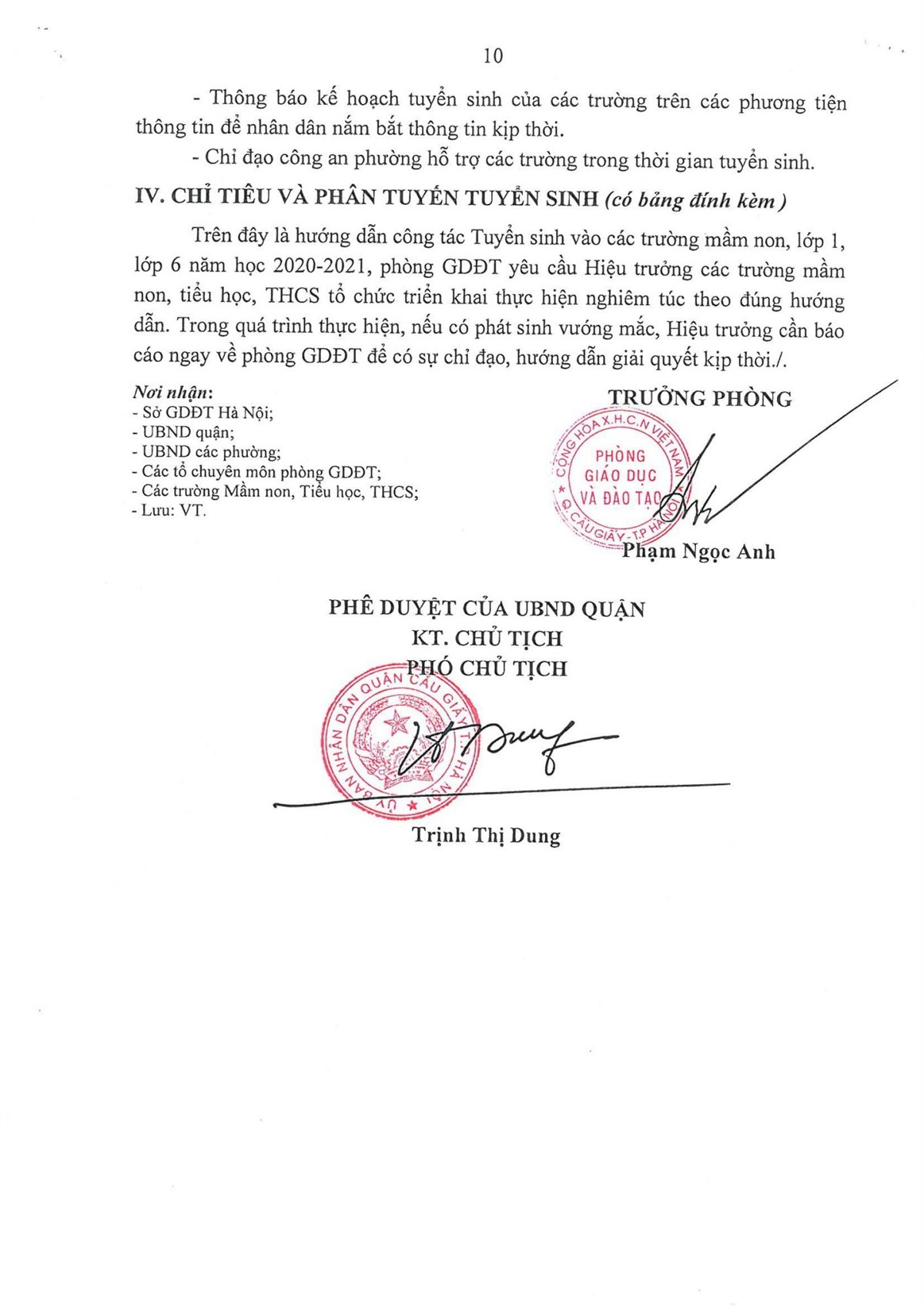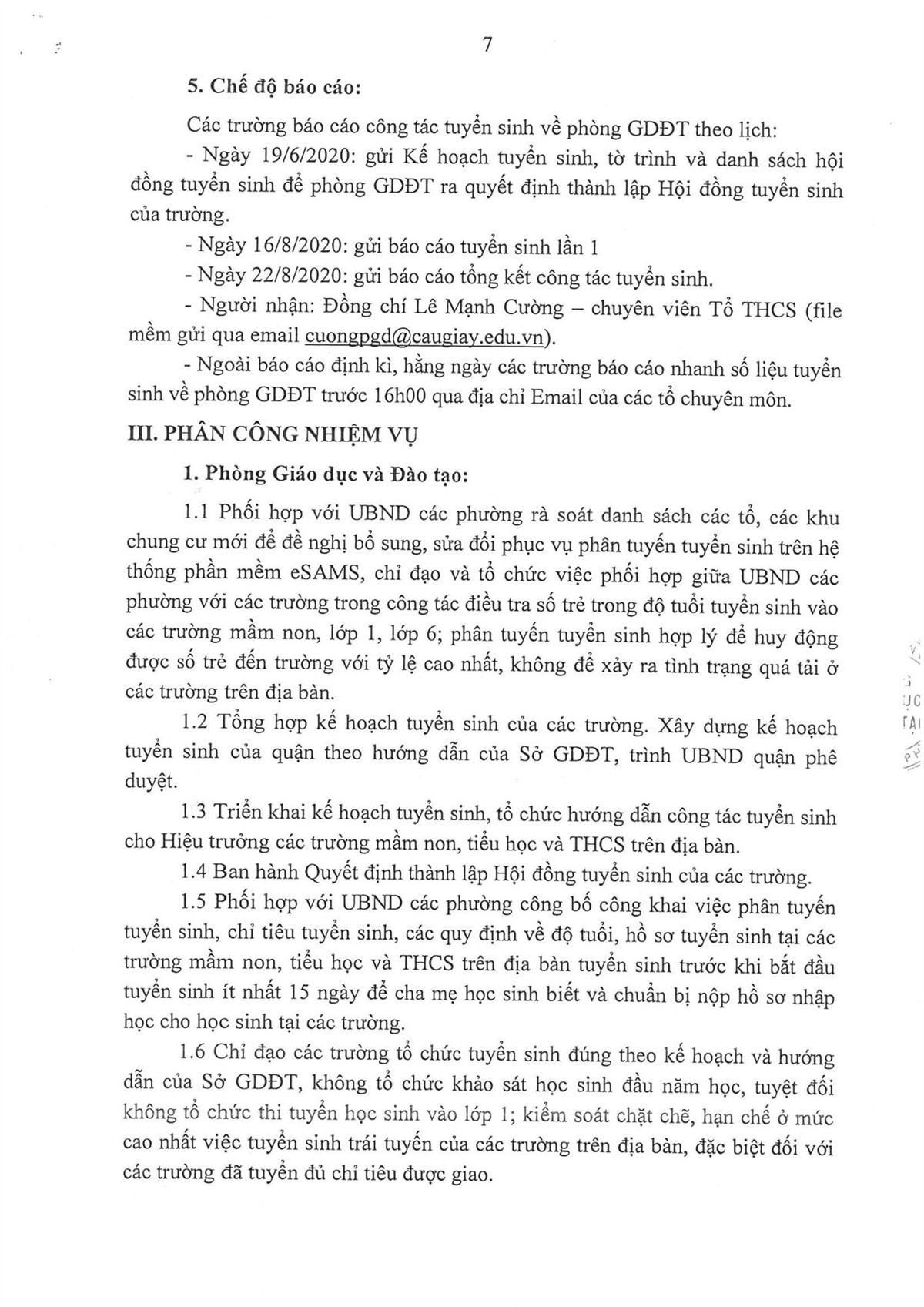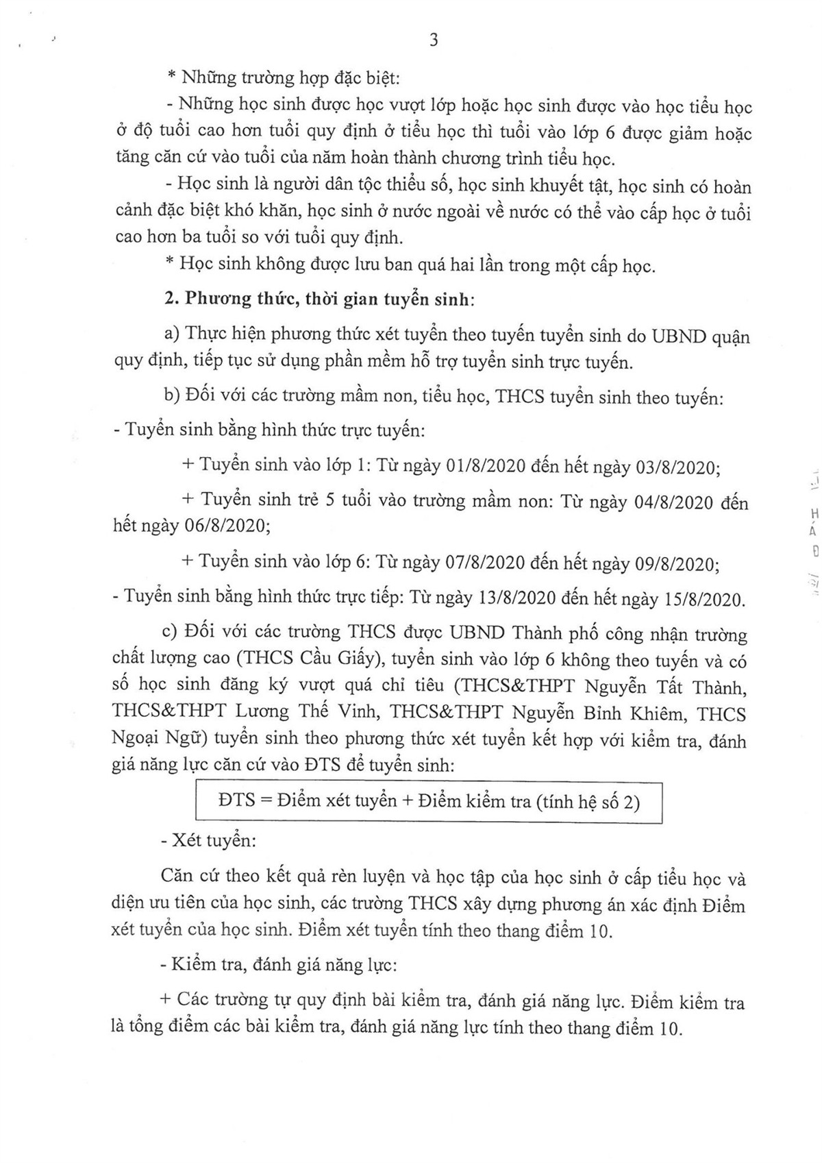 KẾ HOẠCH TUYỂN SINH NĂM HỌC 2020-2021 CỦA QUẬN CẦU GIẤY