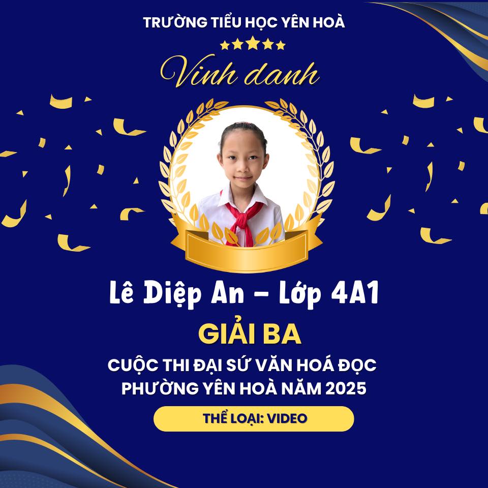 Em: Lê Diệp An - lớp 4A1 đạt Giải Ba.