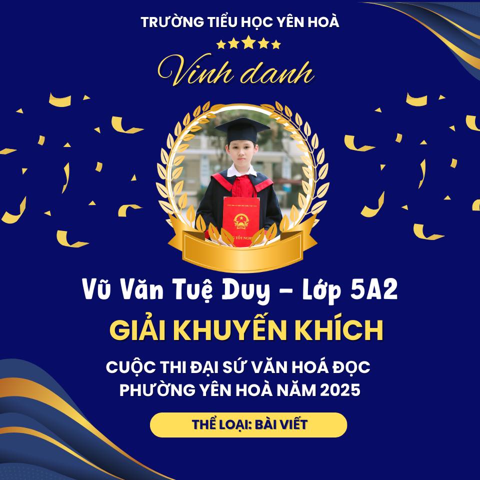 Em: Vũ Văn Tuệ Duy - lớp 5A2 đạt Giải Khuyến khích.