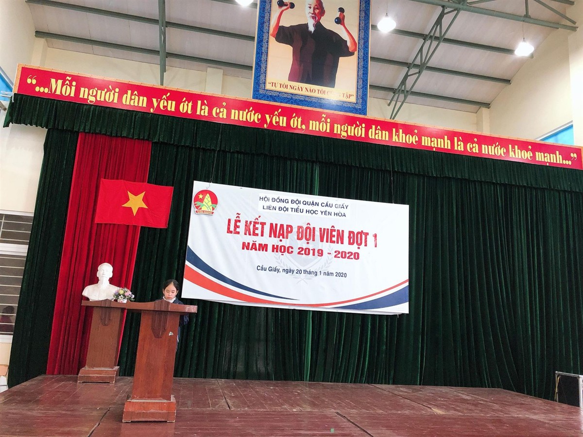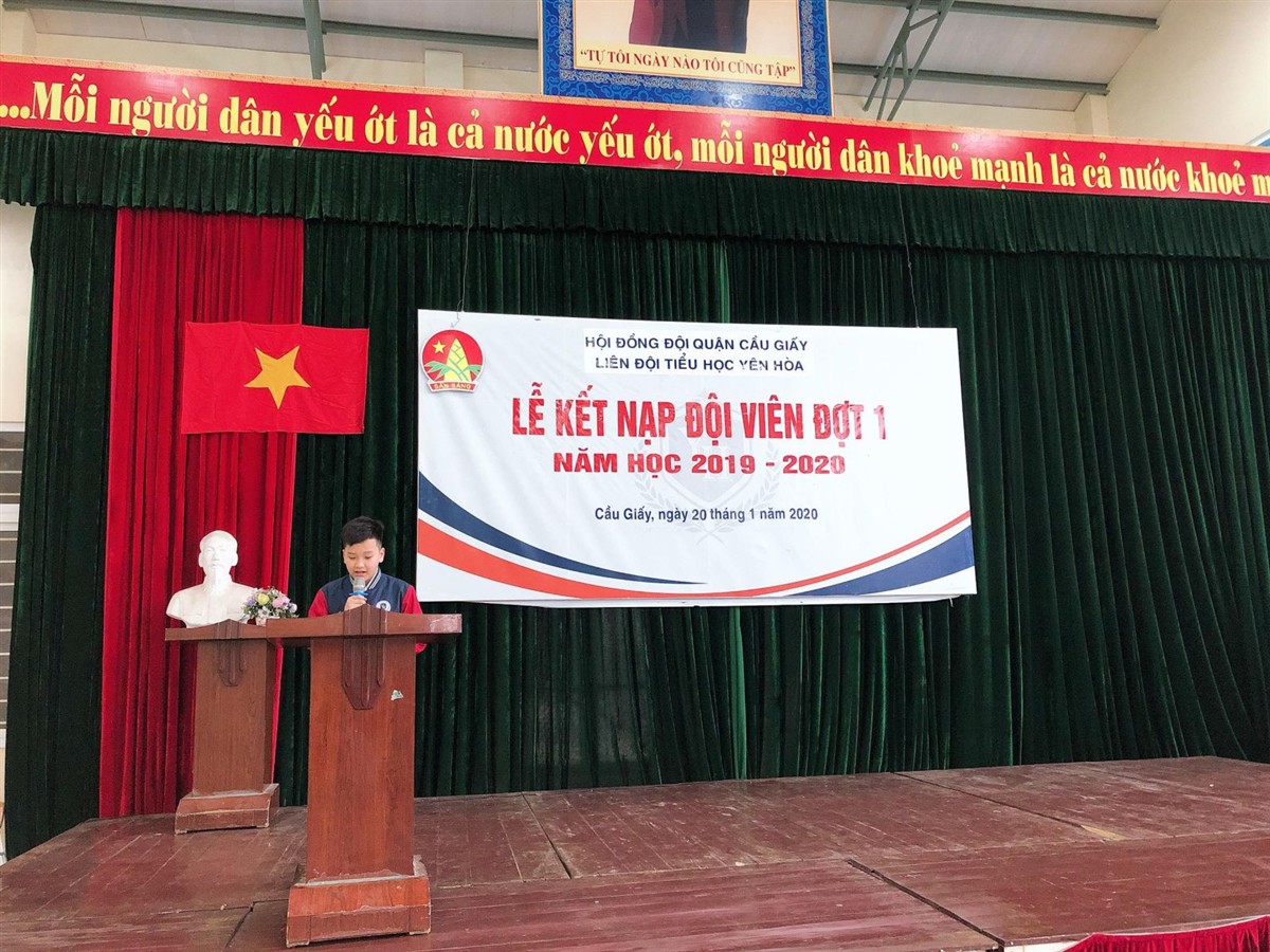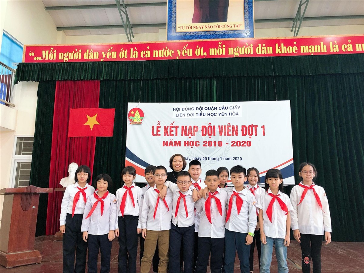 Chiều ngày 20/01/2020, được sự nhất trí của Ban Giám hiệu nhà trường,của  Ban thiếu niên nhà trường, Liên đội trường Tiểu học Yên Hòa tổ chức lễ kết nạp Đội viên mới cho 142 em học sinh đã được thử thách trong một thời gian dài và có nguyện vọng đứng trong hàng ngũ của Đội.