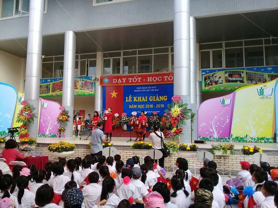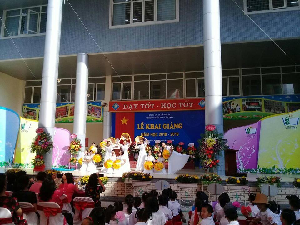 Hoà chung không khí tưng bừng, náo nức của hàng triệu học sinh cả nước đón chào năm học mới, năm học 2018- 2019. Đây là năm toàn ngành thực hiện Nghị định 29 của Chính phủ về “Đổi mới căn bản, toàn diện ngành giáo dục đào tạo, đáp ứng yêu cầu công nghiệp hóa, hiện đại hóa đất nước”, là năm học thiếu nhi Thủ đô thực hiện chủ đề “Thiếu nhi Thủ đô- Học tập tốt, rèn luyện chăm”, ngày 5/9/2018, thầy và trò trường Tiểu học Yên Hòa long trọng tổ chức Lễ khai giảng năm học 2018- 2019.