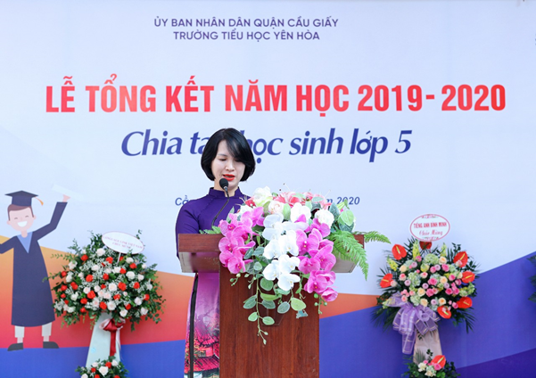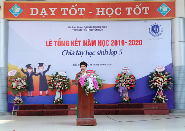 Sau Lễ chào cờ diễn ra trong không khí hết sức trang trọng, cô Đào Thị Thuý - Phó Hiệu trưởng nhà trường lên đọc Báo cáo tổng kết năm học 2019-2020. Báo cáo nêu rõ: trong năm học vừa qua, thầy và trò nhà trường đã đạt được nhiều thành tích nổi bật. Đó là kết quả của sự nỗ lực không ngừng, vươn lên khắc phục mọi hoàn cảnh trong tình hình dịch bệnh diễn biến phức tạp của đội ngũ cán bộ, giáo viên và các em học sinh trường Tiểu học Yên Hoà. Những thành tích đó một lần nữa khẳng định được chất lượng đội ngũ và chất lượng giáo dục, xây dựng và củng cố thương hiệu trường Tiểu học Yên Hoà đáng tin cậy trong lòng phụ huynh và học sinh.